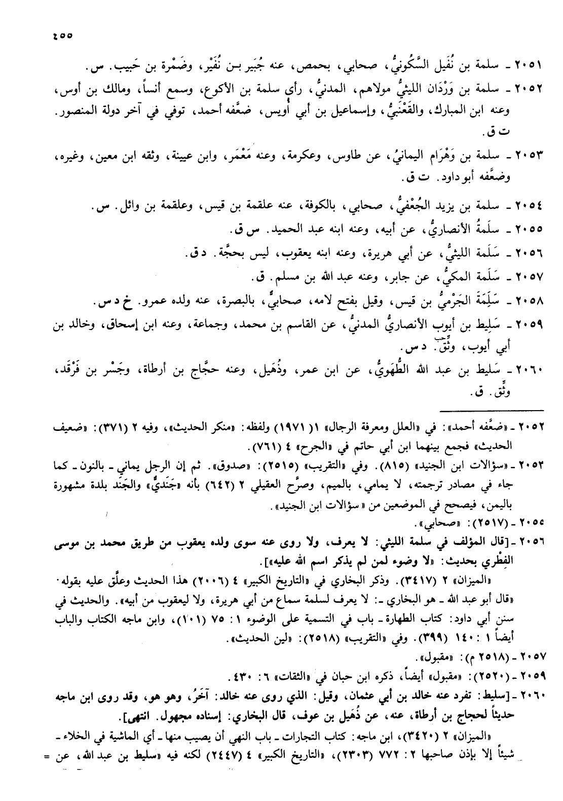 2052- سلمة بن وردان الليثي مولاهم المدني رأى سلمة بن الاكوع وسمع أنسا ومالك بن أوس وعنه بن المبارك والقعنبي وإسماعيل بن أبي أويس ضعفه أحمد توفي في آخر دولة المنصور ت ق