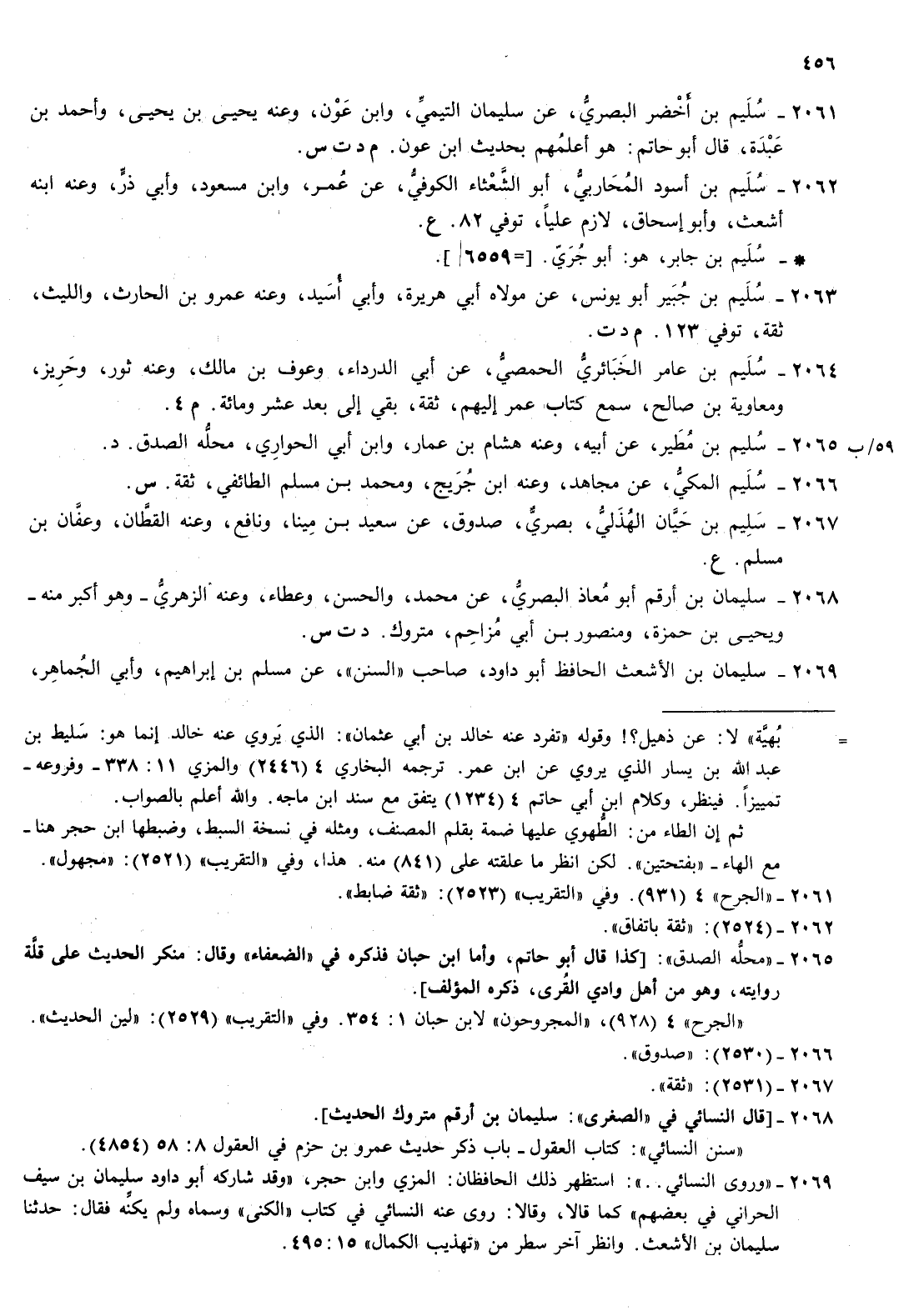 2064- سليم بن عامر الخبائري الحمصي عن أبي الدرداء وعوف بن مالك وعنه ثور وحريز ومعاوية بن صالح سمع كتاب عمر إليهم ثقة بقي إلى بعد عشر ومائة م 4