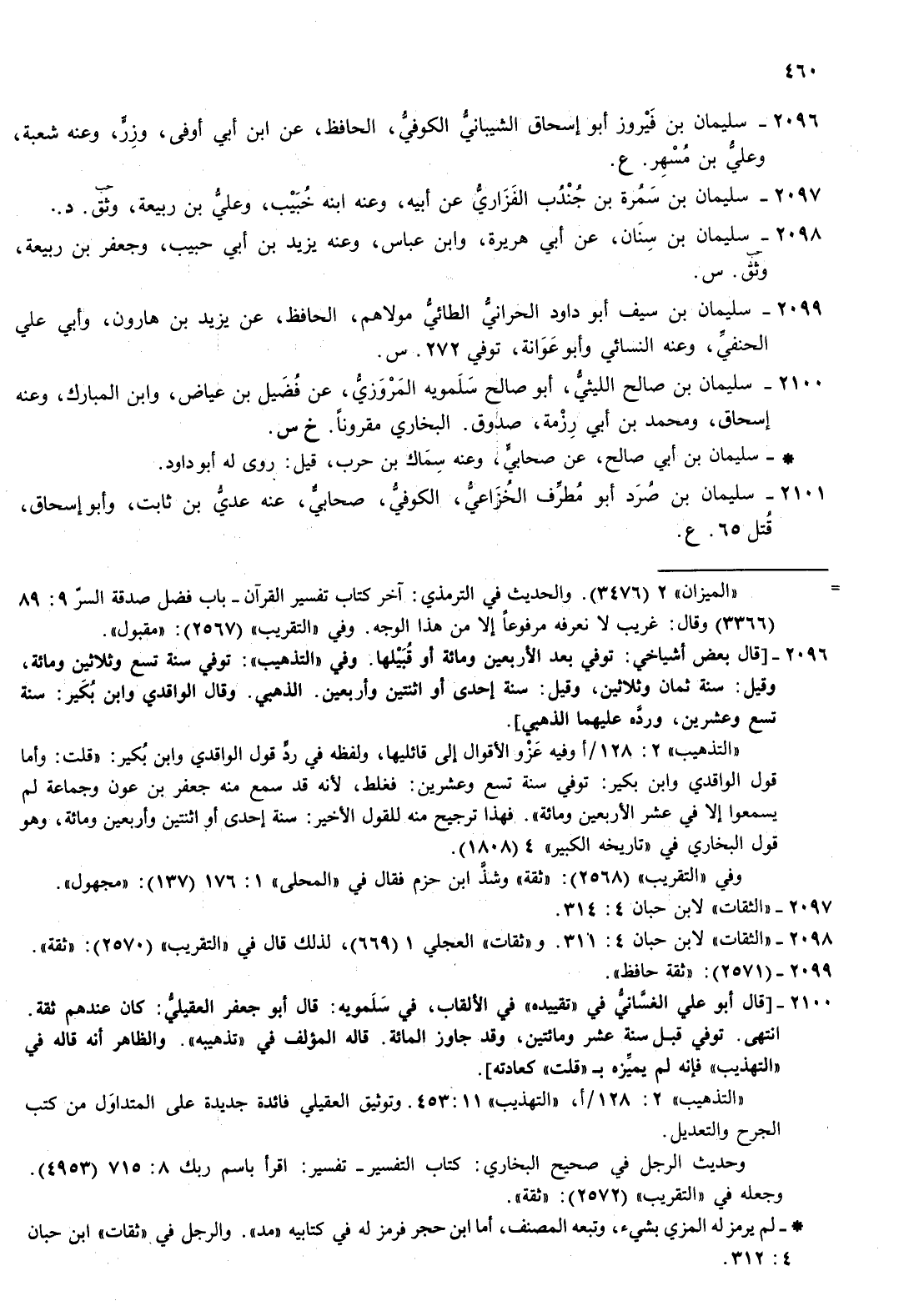 2096- سليمان بن فيروز أبو إسحاق الشيباني الكوفي الحافظ عن بن أبي أوفى وزر وعنه شعبة وعلي بن مسهر ع