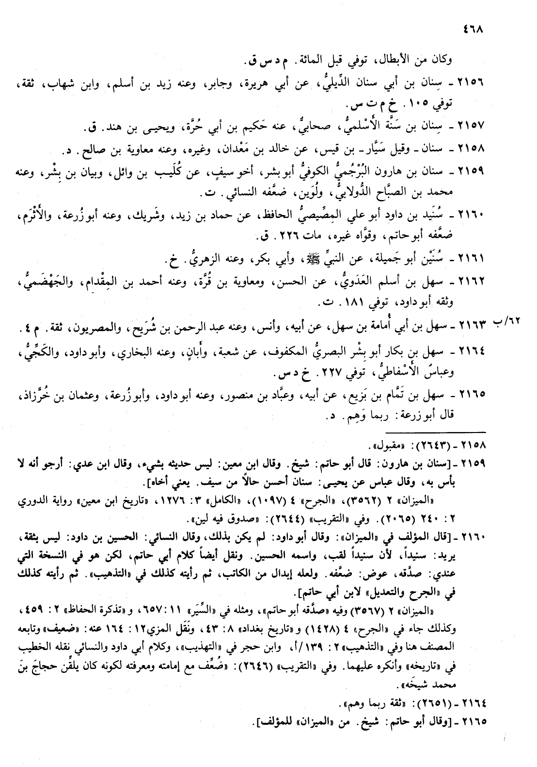 2160- سنيد بن داود أبو علي المصيصي الحافظ عن حماد بن زيد وشريك وعنه أبو زرعة والاثرم ضعفه أبو حاتم وقواه غيره مات 226 ق