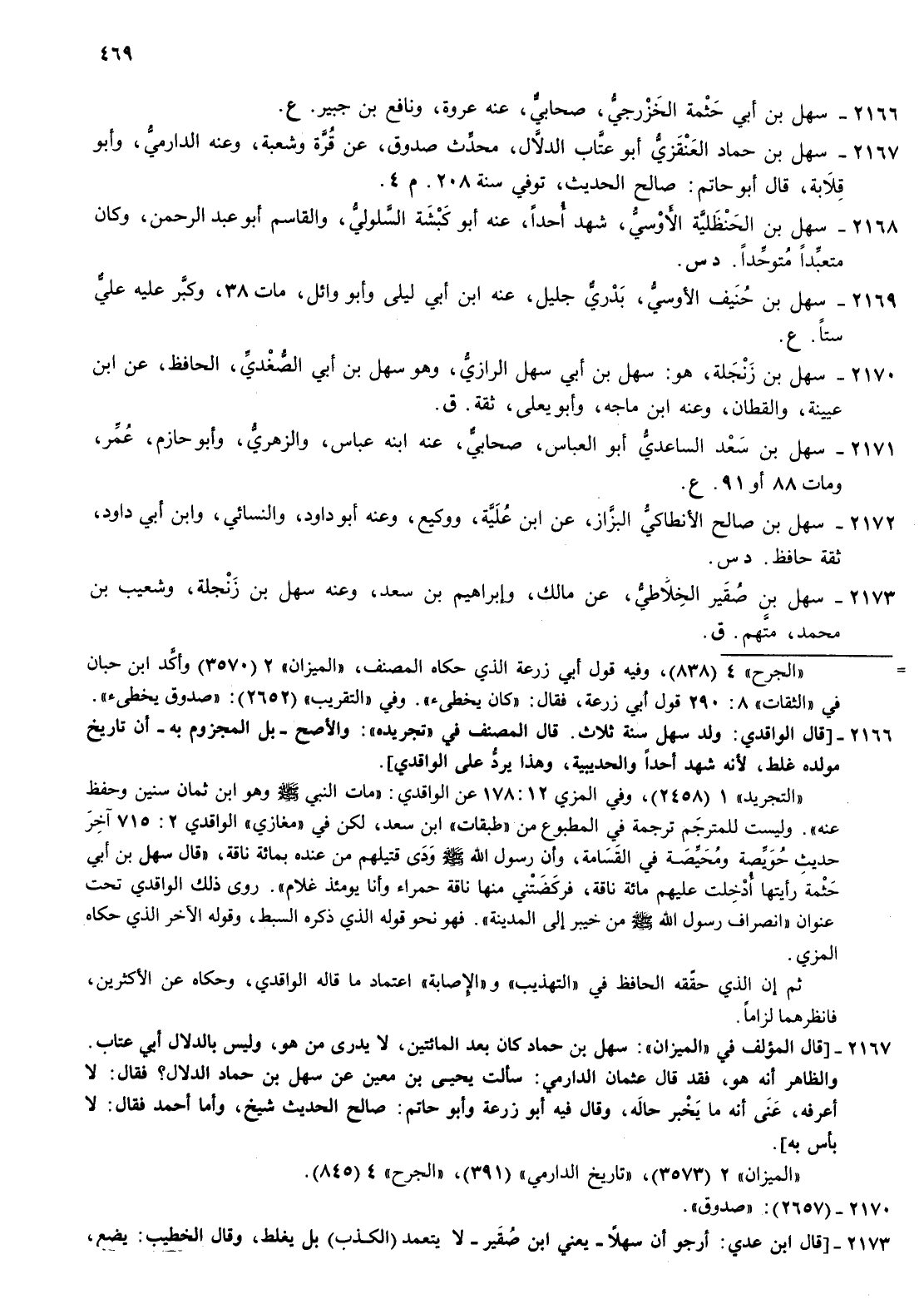 2171- سهل بن سعد الساعدي أبو العباس صحابي عنه ابنه عباس والزهري وأبو حازم عمر ومات 88 أو 91 ع