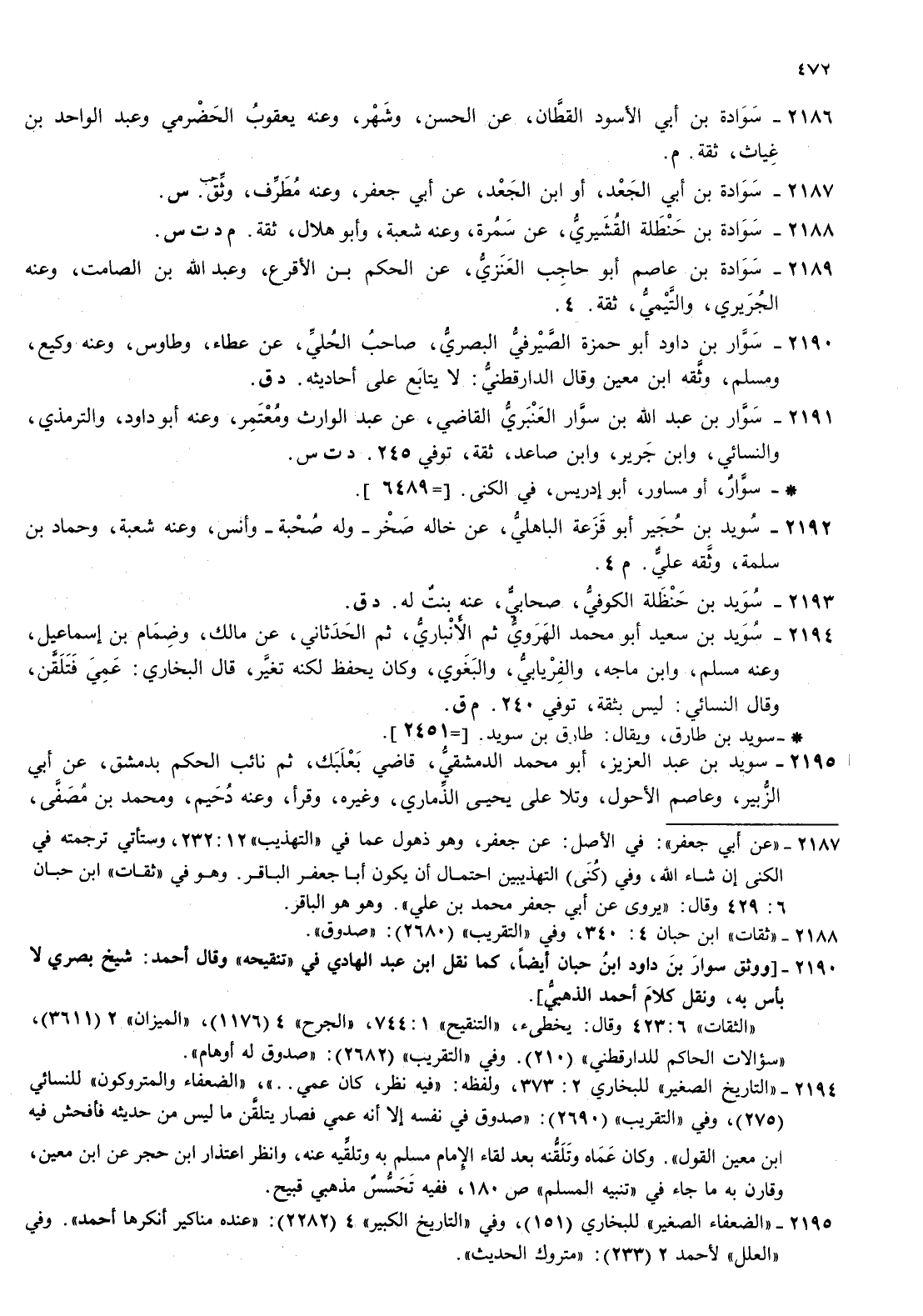 2191- سوار بن عبد الله بن سوار العنبري القاضي عن عبد الوارث ومعتمر وعنه أبو داود والترمذي والنسائي وابن جرير وابن صاعد ثقة توفي 245 د ت س