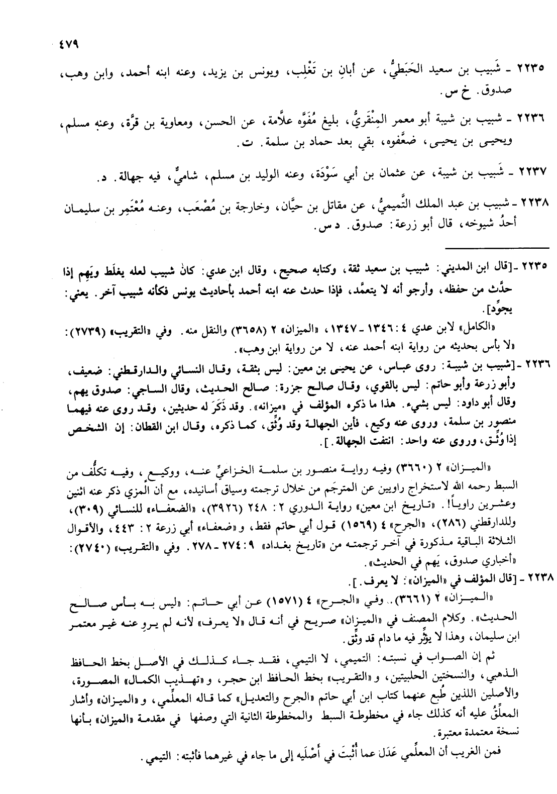 2236- شبيب بن شيبة أبو معمر المنقري بليغ مفوه علامة عن الحسن ومعاوية بن قرة وعنه مسلم ويحيى بن يحيى ضعفوه بقي بعد حماد بن سلمة ت