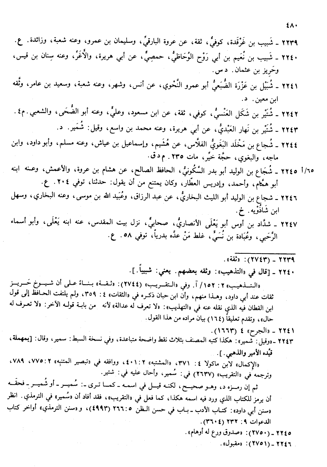 2242- شتير بن شكل العنسي كوفي ثقة عن بن مسعود وعلي وعنه أبو الضحى والشعبي م 4
