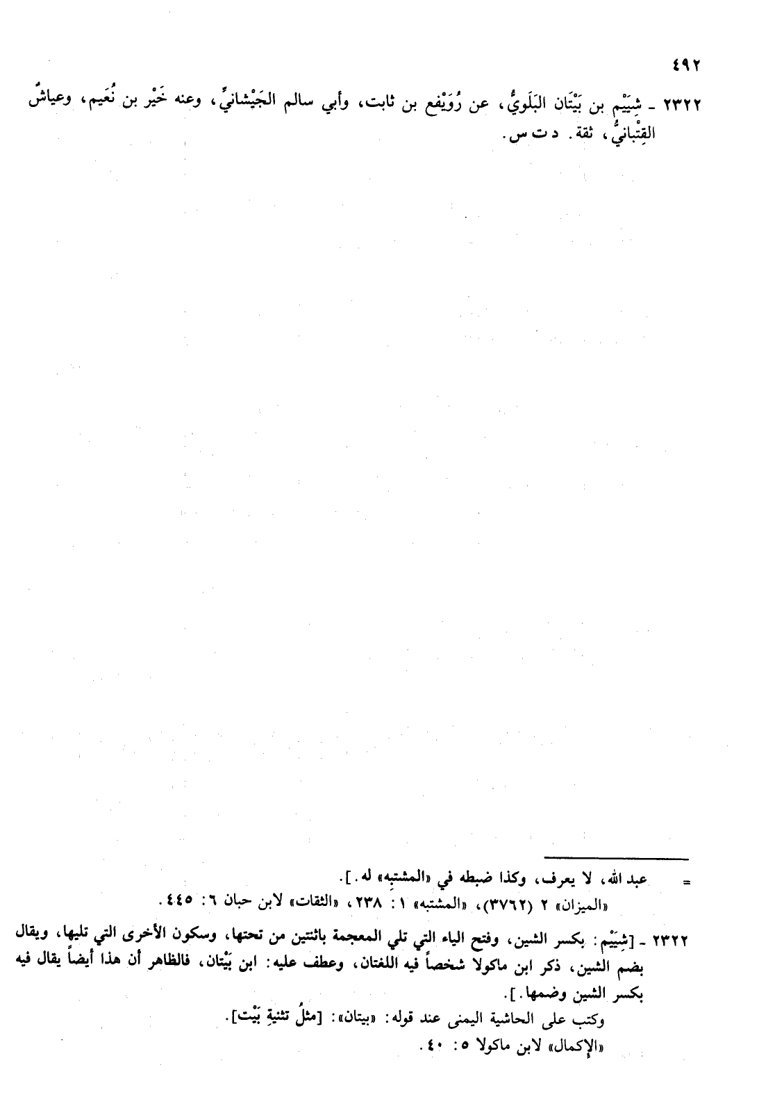 2322- شييم بن بيتان البلوي عن رويفع بن ثابت وأبي سالم الجيشاني وعنه خير بن نعيم وعياش القتباني ثقة د ت س