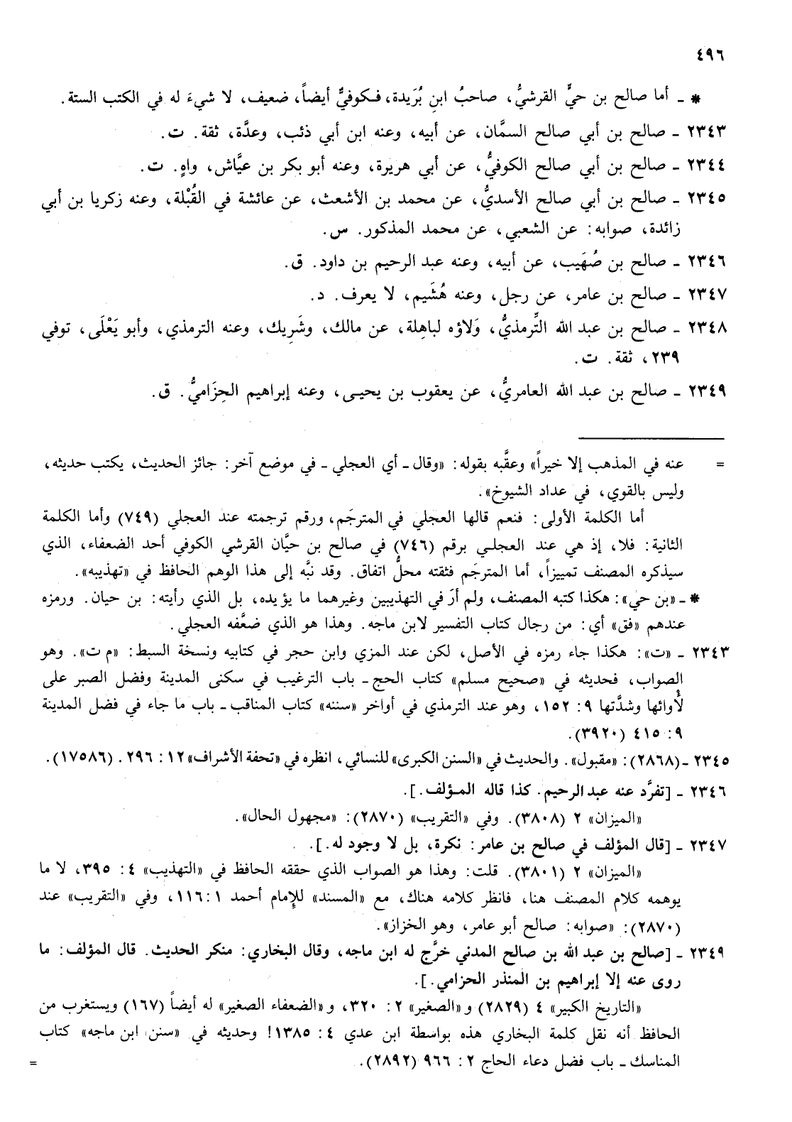 2343- صالح بن أبي صالح السمان عن أبيه وعنه بن أبي ذئب وعدة ثقة ت