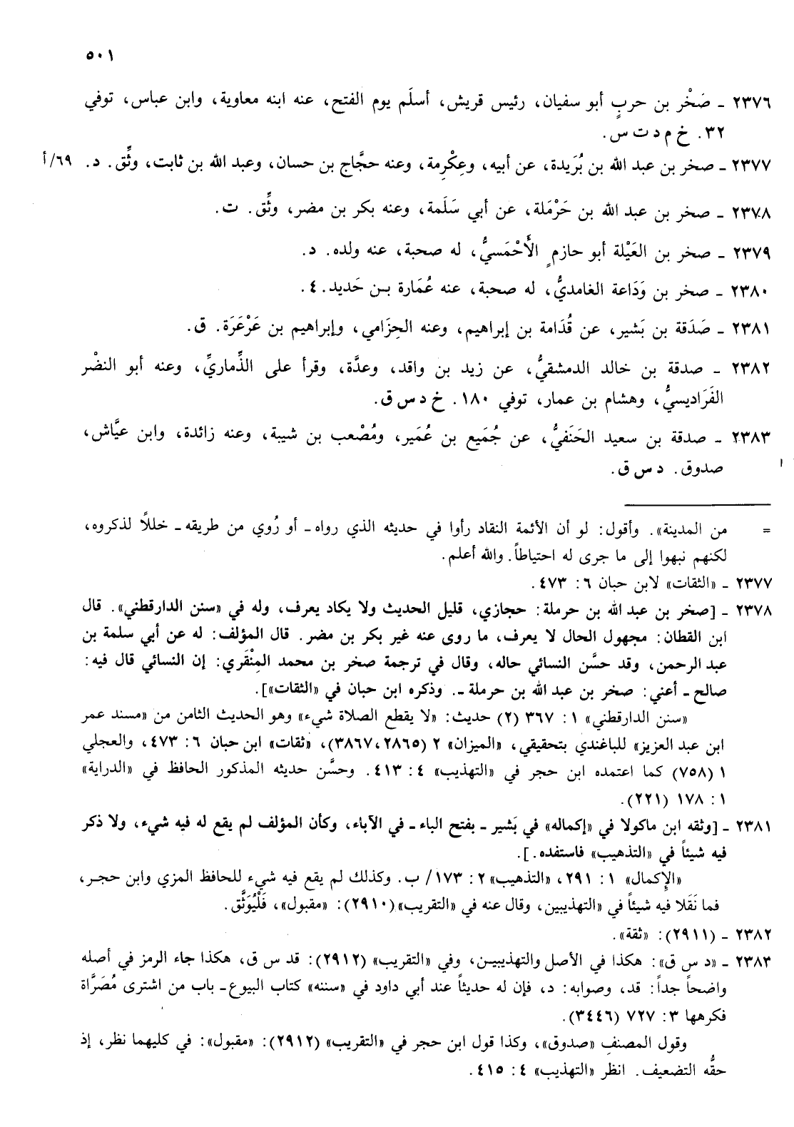 2376- صخر بن حرب أبو سفيان رئيس قريش أسلم يوم الفتح عنه ابنه معاوية وابن عباس توفي 32 خ م د ت س