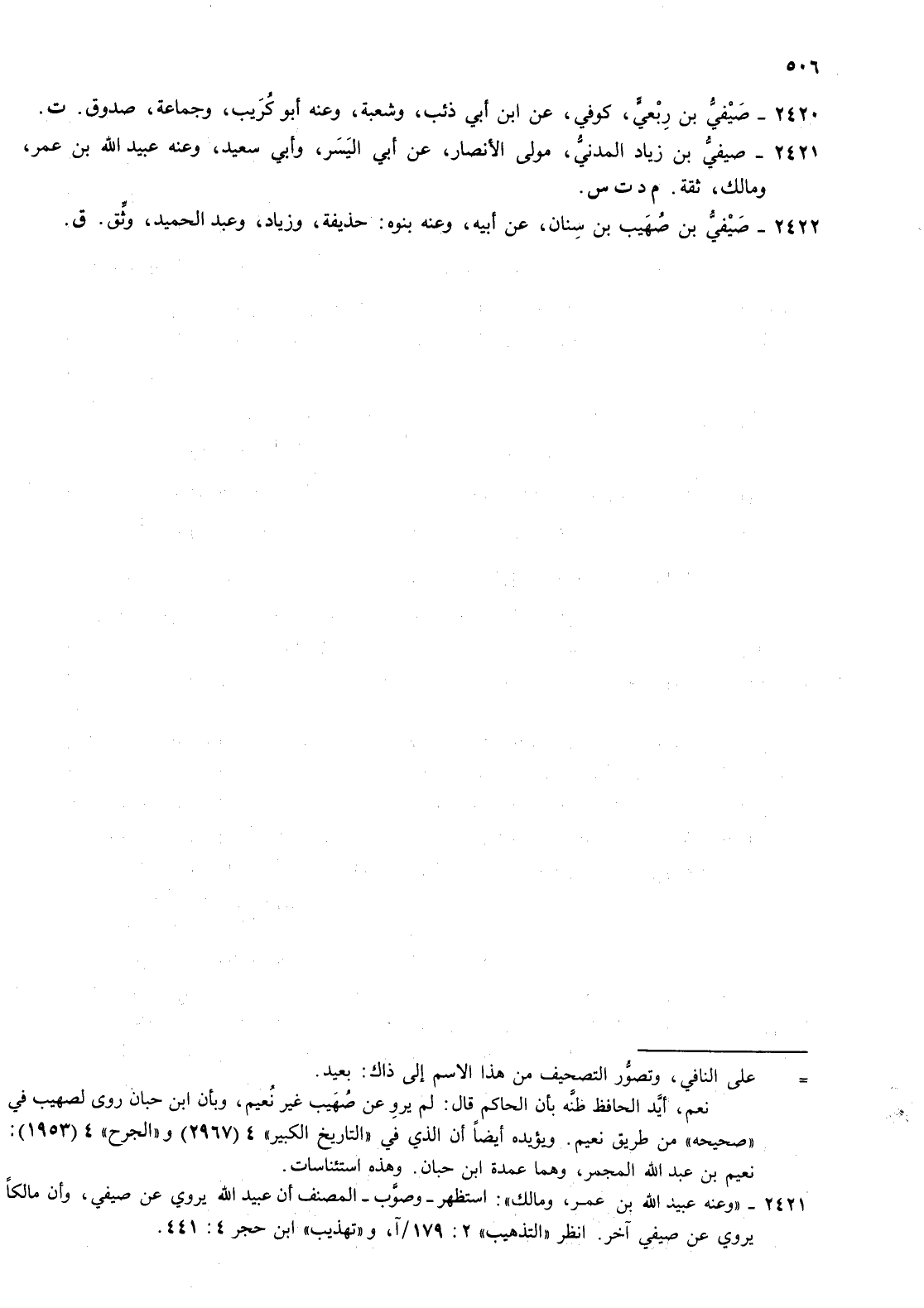 2420- صيفي بن ربعي كوفي عن بن أبي ذئب وشعبة وعنه أبو كريب وجماعة صدوق ت