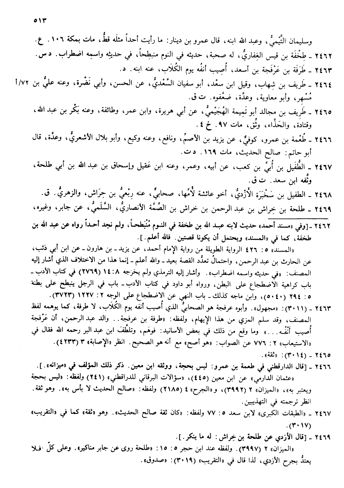 2462- طخفة بن قيس الغفاري له صحبة حديثه في النوم منبطحا في حديثه واسمه اضطراب د س