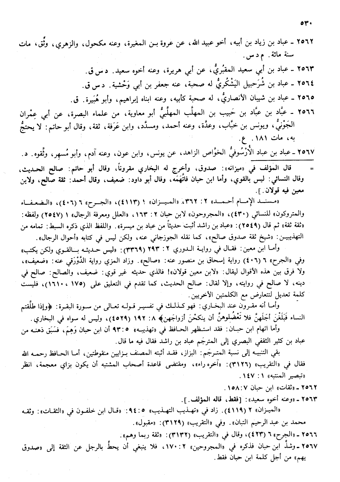 2567- عباد بن عباد الارسوفي الخواص الزاهد عن يونس وابن عون وعنه آدم وأبو مسهر وثقوه د
