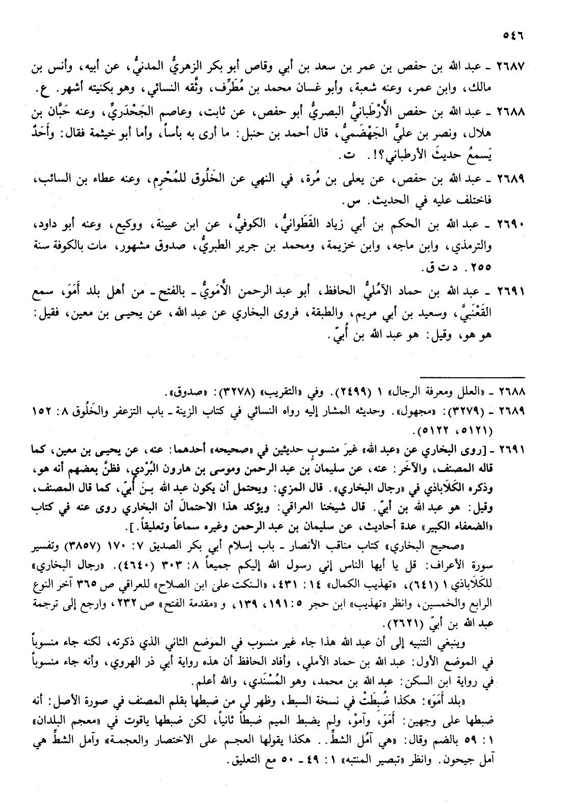 2691- عبد الله بن حماد الآملي الحافظ أبو عبد الرحمن الاموي بالفتح من أهل بلد أمو سمع القعنبي وسعيد بن أبي مريم والطبقة فروى البخاري عن عبد الله عن يحيى بن معين فقيل هو هو وقيل هو عبد الله بن أبي