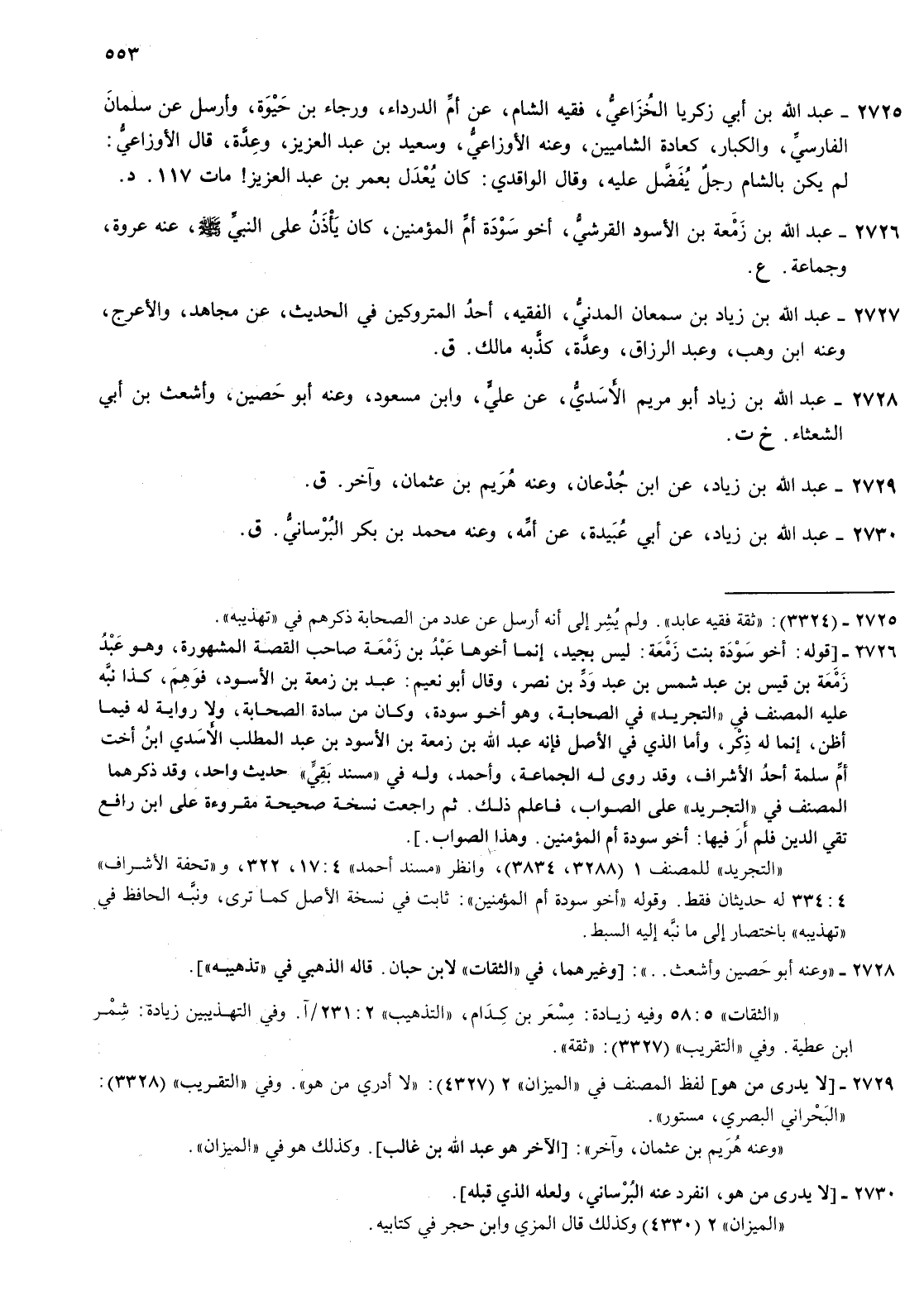 2725- عبد الله بن أبي زكريا الخزاعي فقيه الشام عن أم الدرداء ورجاء بن حيوة وأرسل عن سلمان الفارسي والكبار كعادة الشاميين وعنه الاوزاعي وسعيد بن عبد العزيز وعدة قال الاوزاعي لم يكن بالشام رجل يفضل عليه وقال الواقدي كان يعدل بعمر بن عبد العزيز مات 117 د