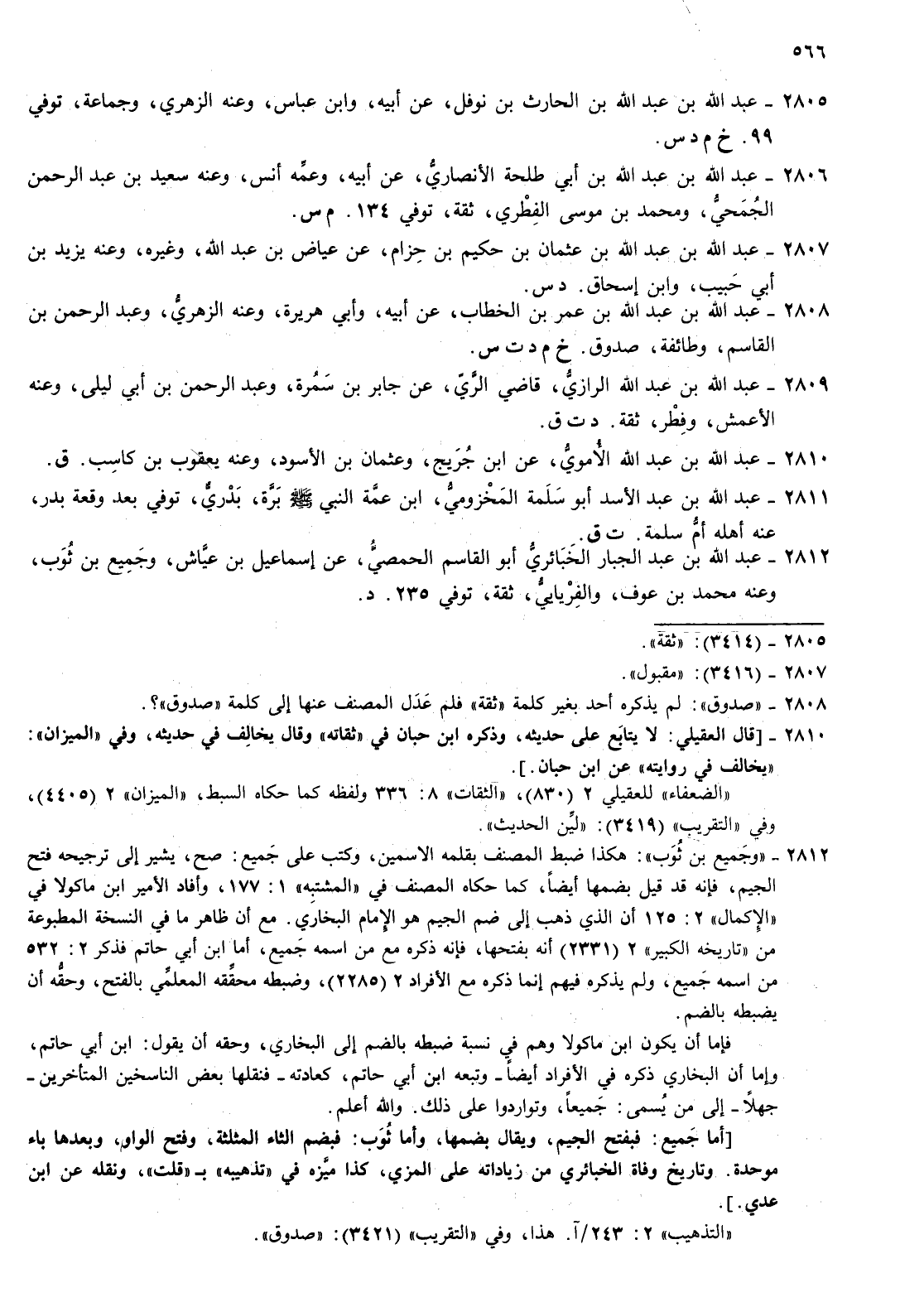 2806- عبد الله بن عبد الله بن أبي طلحة الانصاري عن أبيه وعمه أنس وعنه سعيد بن عبد الرحمن الجمحي ومحمد بن موسى الفطري ثقة توفي 134 م س