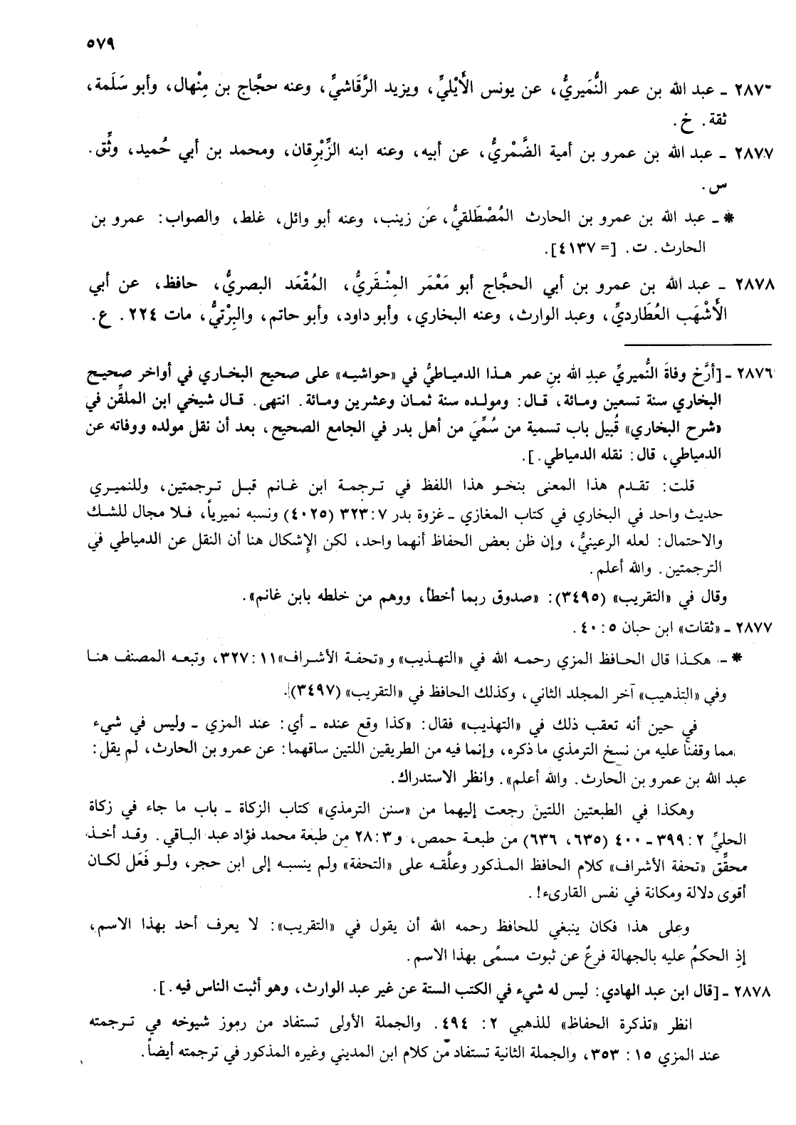 *- عبد الله بن عمرو بن الحارث المصطلقي عن زينب وعنه أبو وائل غلط والصواب عمرو بن الحارث ت 4137