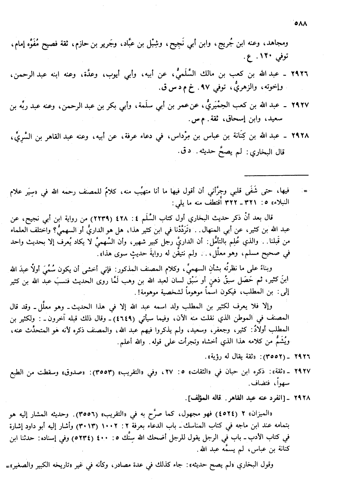 2928- عبد الله بن كنانة بن عباس بن مرداس في دعاء عرفة عن أبيه وعنه عبد القاهر بن السري قال البخاري لم يصح حديثه د ق