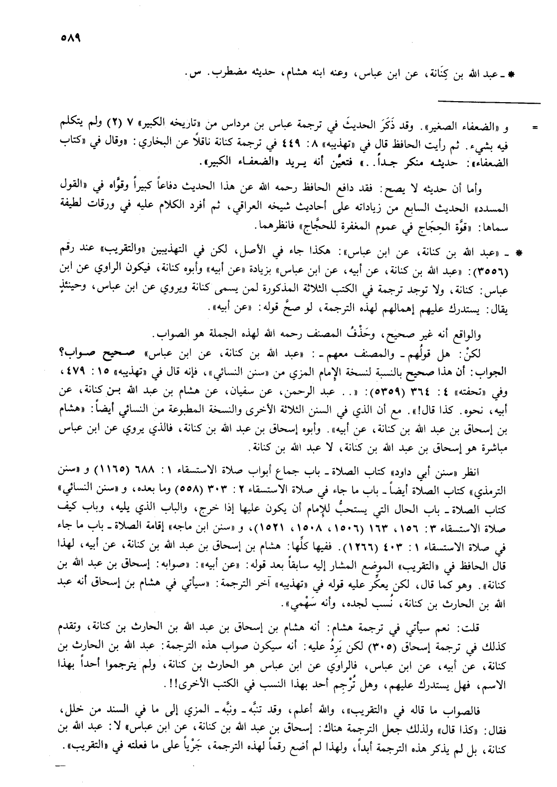 *- عبد الله بن كنانة عن بن عباس وعنه ابنه هشام حديثه مضطرب س