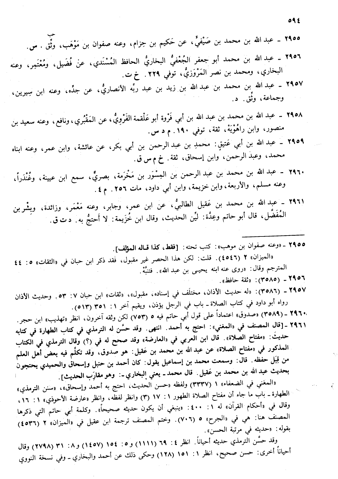 2956- عبد الله بن محمد أبو جعفر الجعفي البخاري الحافظ المسندي عن فضيل ومعتمر وعنه البخاري ومحمد بن نصر المروزي توفي 229 خ ت