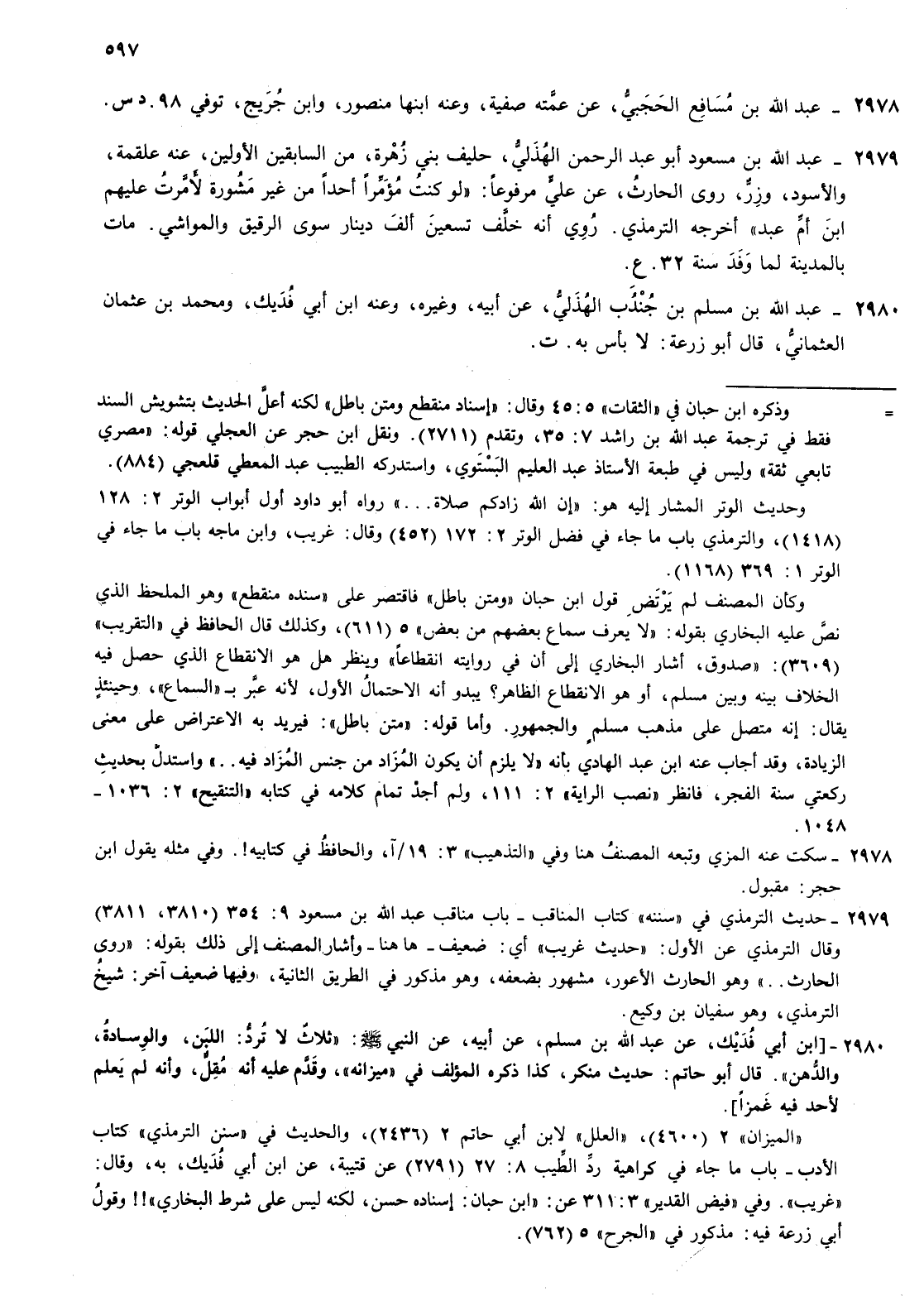 2980- عبد الله بن مسلم بن جندب الهذلي عن أبيه وغيره وعنه بن أبي فديك ومحمد بن عثمان العثماني قال أبو زرعة لا بأس به ت