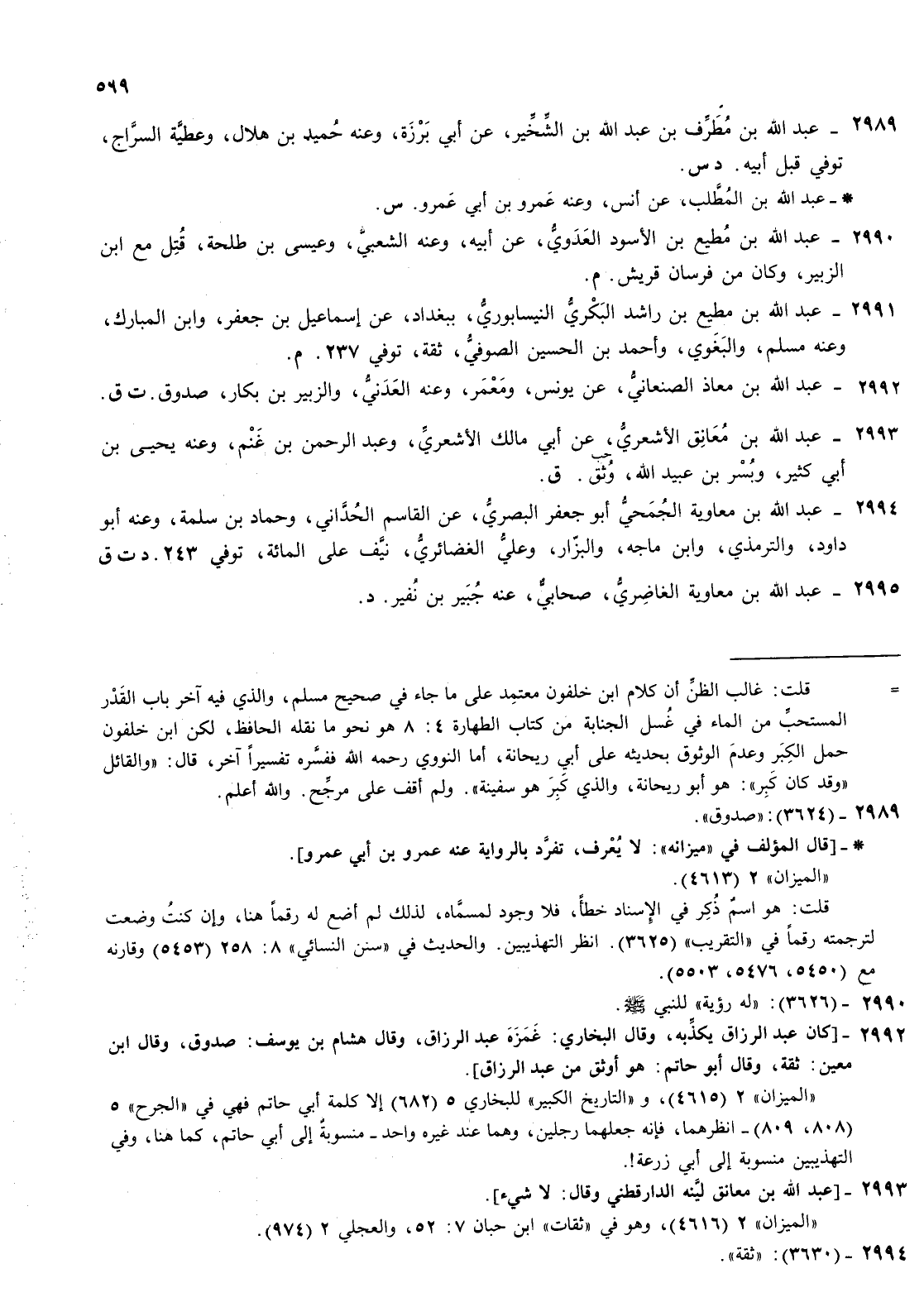 2993- عبد الله بن معانق الاشعري عن أبي مالك الاشعري وعبد الرحمن بن غنم وعنه يحيى بن أبي كثير وبسر بن عبيد الله وثق حب ق