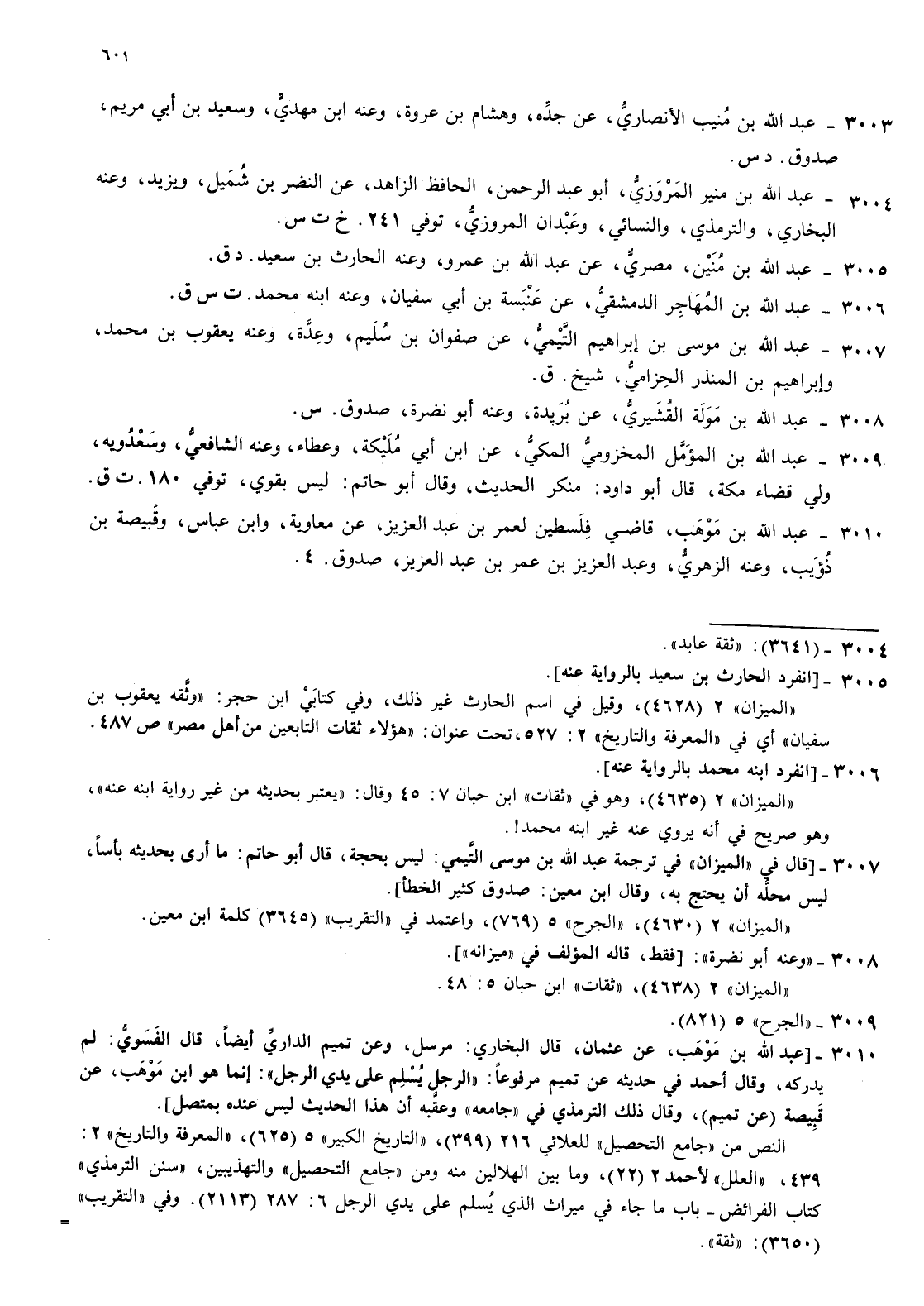 3004- عبد الله بن منير المروزي أبو عبد الرحمن الحافظ الزاهد عن النضر بن شميل ويزيد وعنه البخاري والترمذي والنسائي وعبدان المروزي توفي 241 خ ت س
