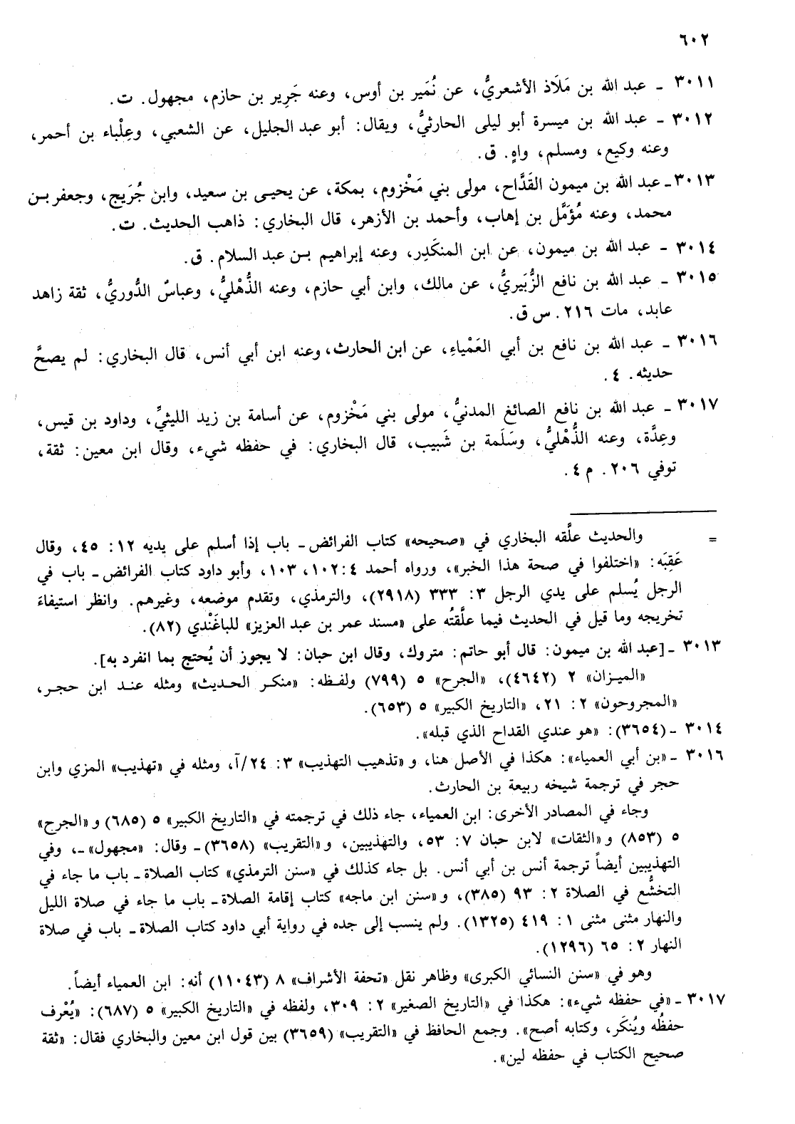 3017- عبد الله بن نافع الصائغ المدني مولى بني مخزوم عن أسامة بن زيد الليثي وداود بن قيس وعدة وعنه الذهلي وسلمة بن شبيب قال البخاري في حفظه شئ وقال بن معين ثقة توفي 206 م 4