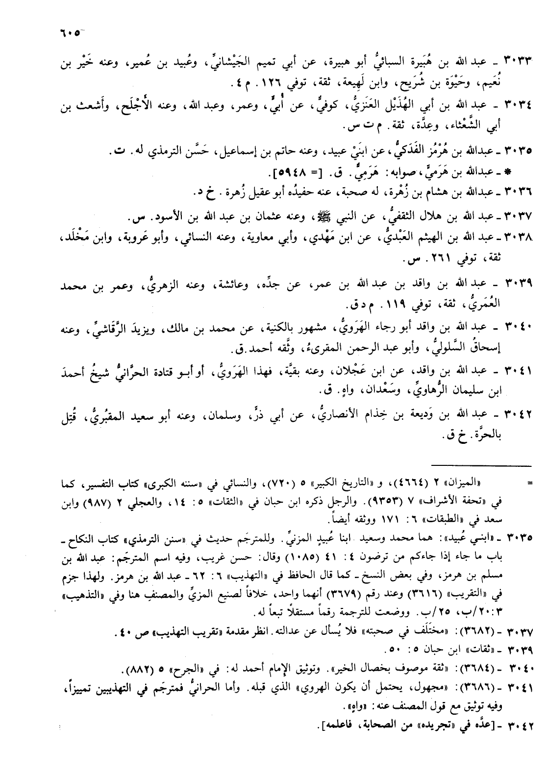 3033- عبد الله بن هبيرة السبائي أبو هبيرة عن أبي تميم الجيشاني وعبيد بن عمير وعنه خير بن نعيم وحيوة بن شريح وابن لهيعة ثقة توفي 126 م 4