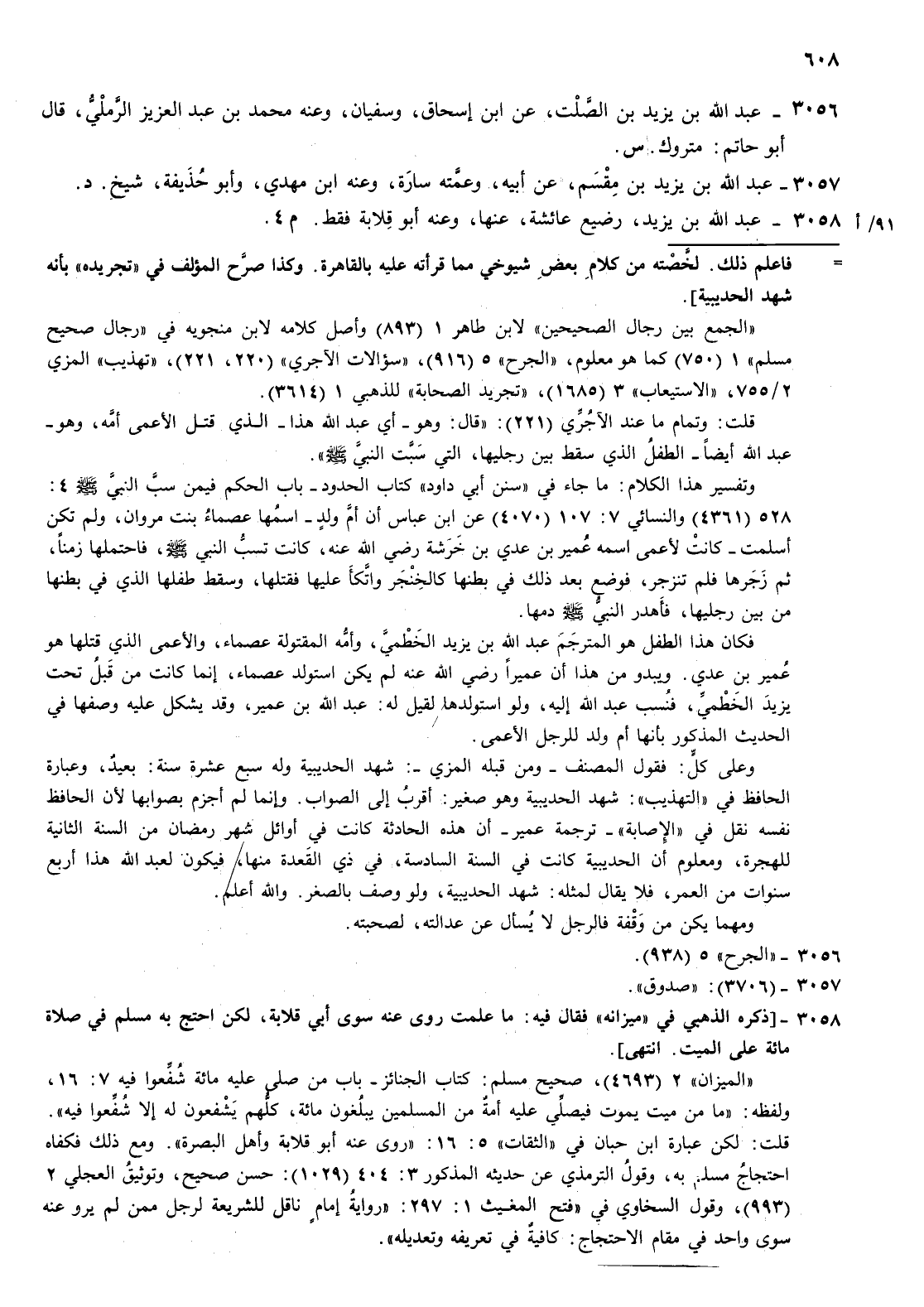 3058- عبد الله بن يزيد رضيع عائشة عنها وعنه أبو قلابة فقط م 4