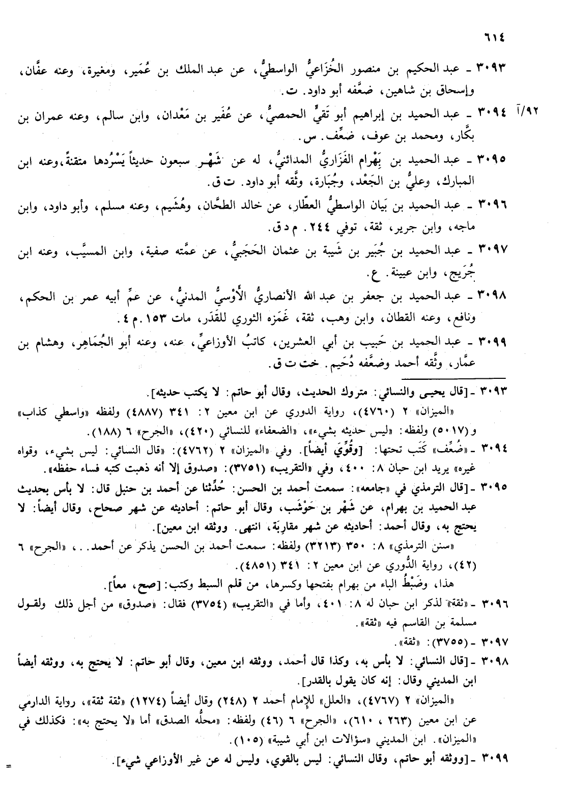 3096- عبد الحميد بن بيان الواسطي العطار عن خالد الطحان وهشيم وعنه مسلم وأبو داود وابن ماجة وابن جرير ثقة توفي 244 م د ق