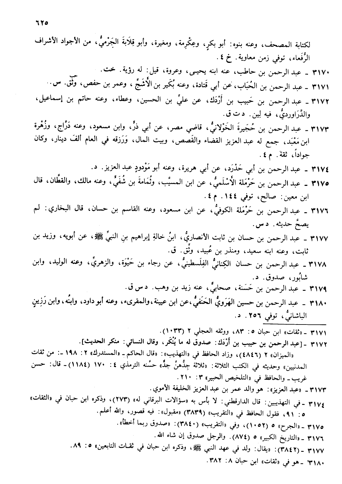 3175- عبد الرحمن بن حرملة الاسلمي عن بن المسيب وثمامة بن شفي وعنه مالك والقطان قال بن معين صالح توفي 144 م 4