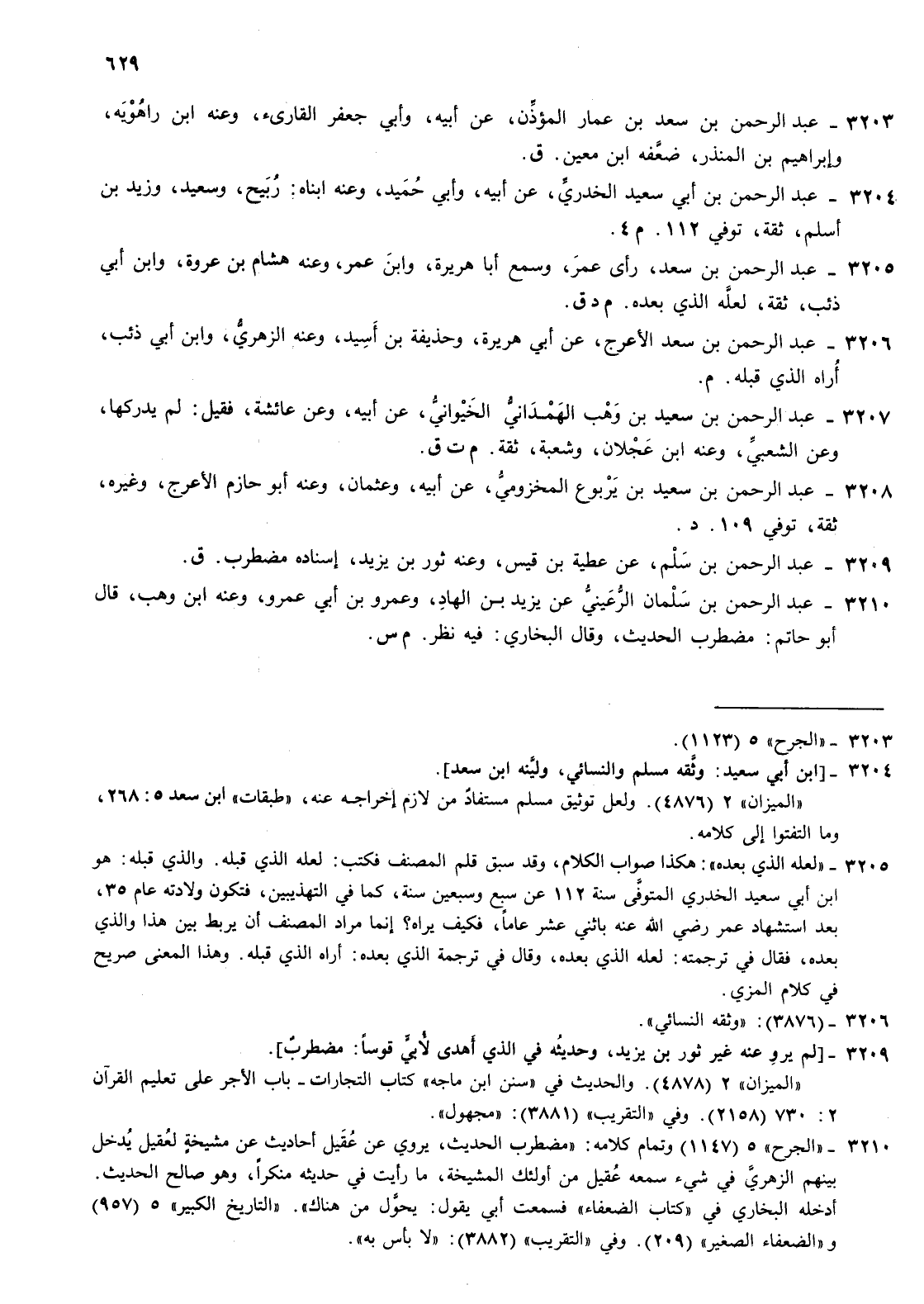 3204- عبد الرحمن بن أبي سعيد الخدري عن أبيه وأبي حميد وعنه ابناه ربيح وسعيد وزيد بن أسلم ثقة توفي 112 م 4
