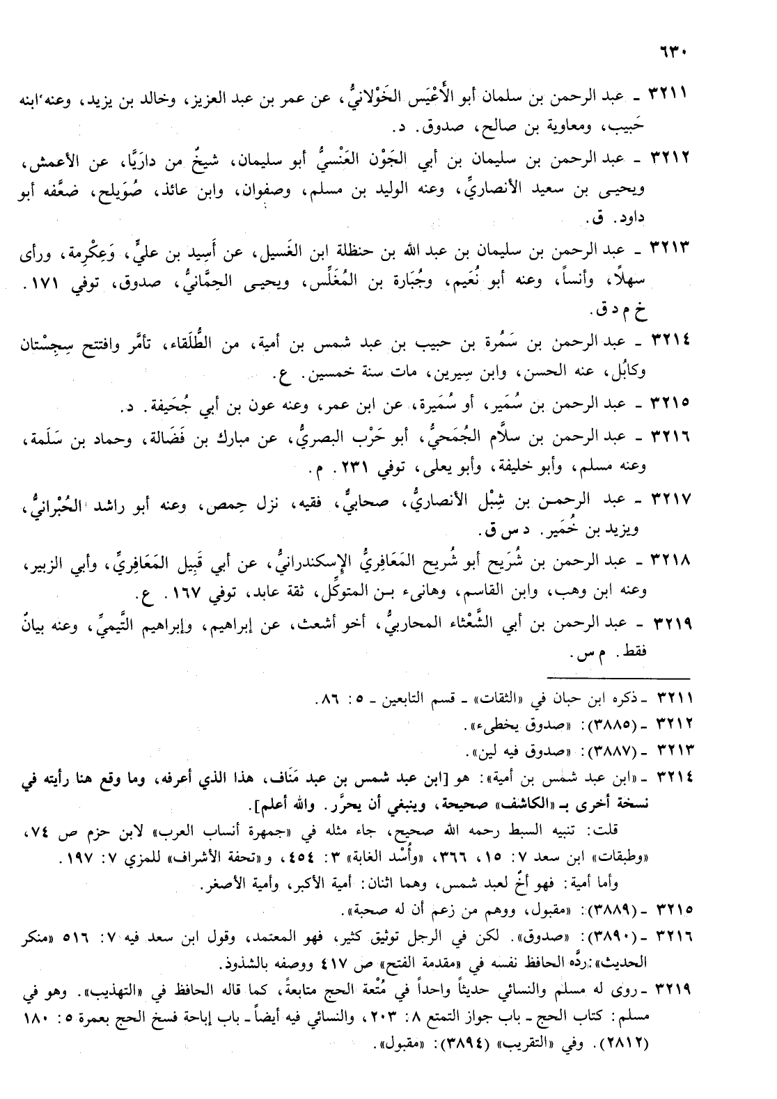 3214- عبد الرحمن بن سمرة بن حبيب بن عبد شمس بن أمية من الطلقاء تأمر وافتتح سجستان وكابل عنه الحسن وابن سيرين مات سنة خمسين ع