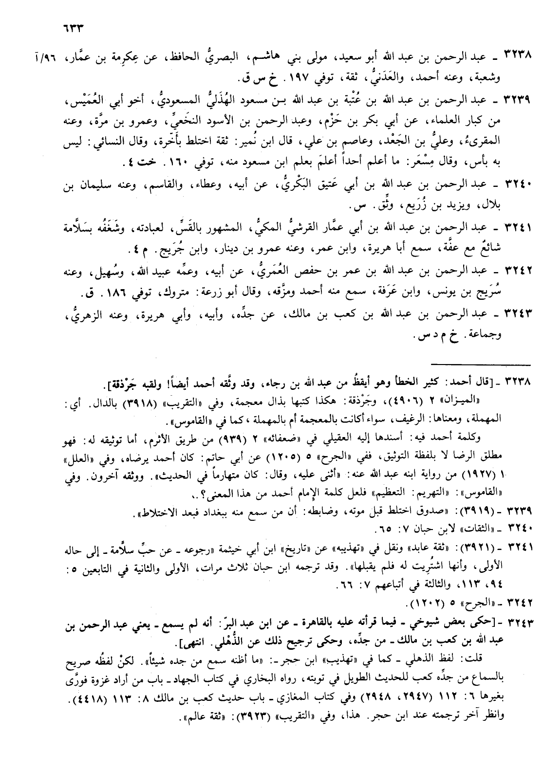3238- عبد الرحمن بن عبد الله أبو سعيد مولى بني هاشم البصري الحافظ عن عكرمة بن عمار