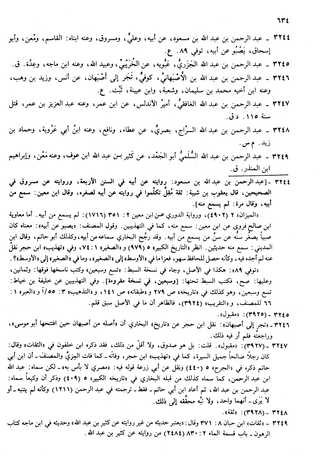 3244- عبد الرحمن بن عبد الله بن مسعود عن أبيه وعلي ومسروق وعنه ابناه القاسم ومعن وأبو إسحاق يصبو عن أبيه توفي 89 ع