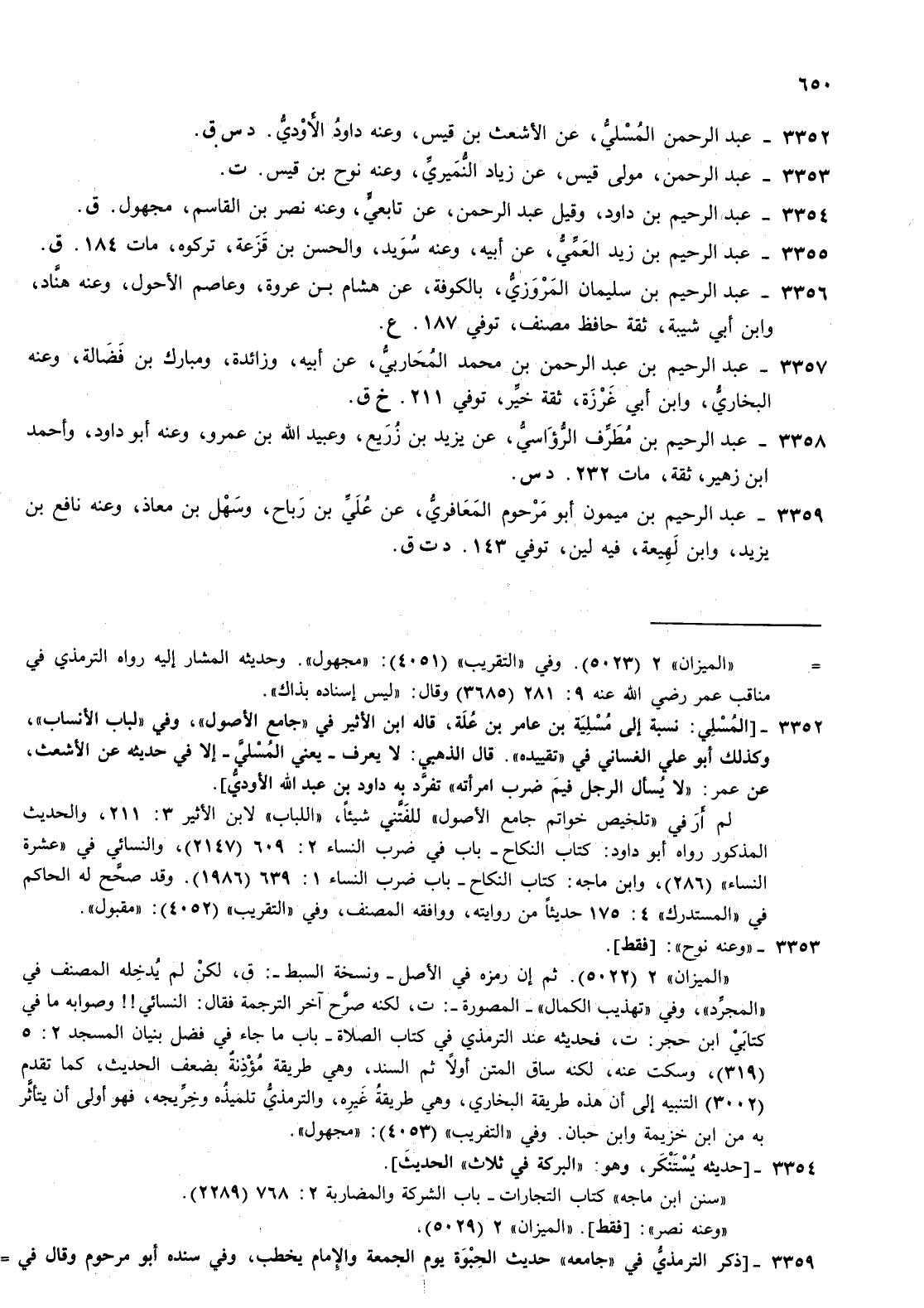 3352- عبد الرحمن المسلي عن الاشعث بن قيس وعنه داود الاودي د س ق