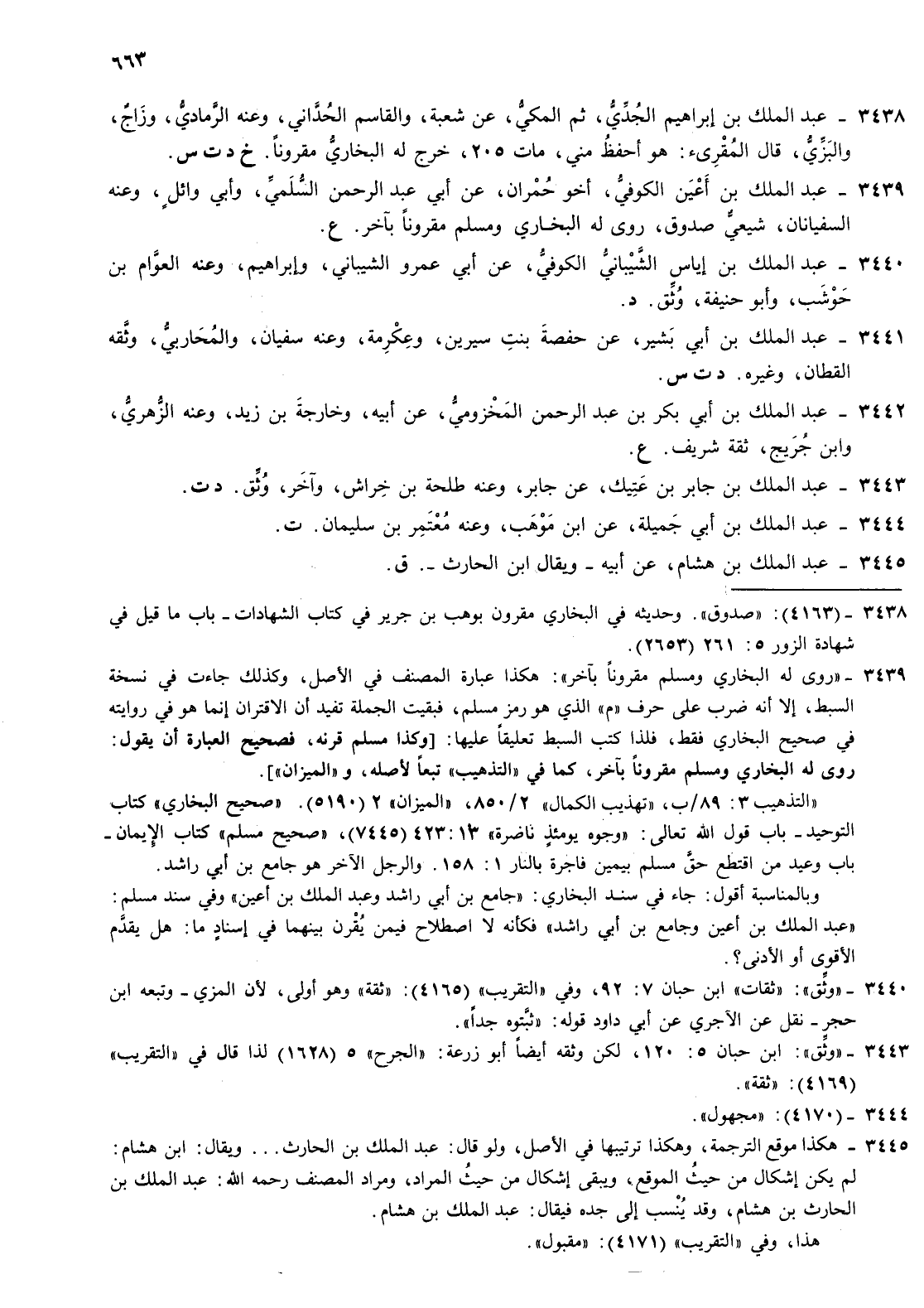 3439- عبد الملك بن أعين الكوفي أخو حمران عن أبي عبد الرحمن السلمي وأبي وائل وعنه السفيانان شيعي صدوق روى له البخاري ومسلم مقرونا بآخر ع