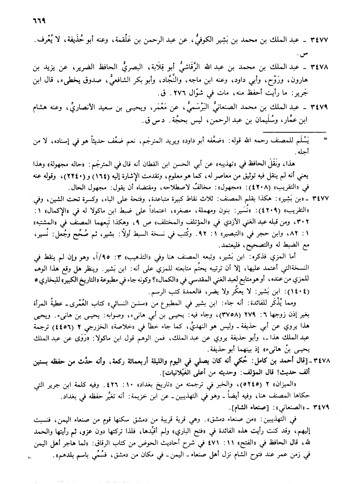 3477- عبد الملك بن محمد بن بشير الكوفي عن عبد الرحمن بن علقمة وعنه أبو حذيفة لا يعرف س