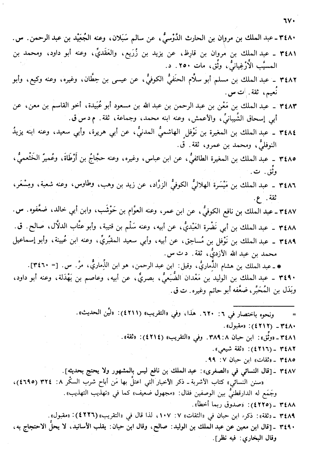 3480- عبد الملك بن مروان بن الحارث الدوسي عن سالم سبلان وعنه الجعيد بن عبد الرحمن س