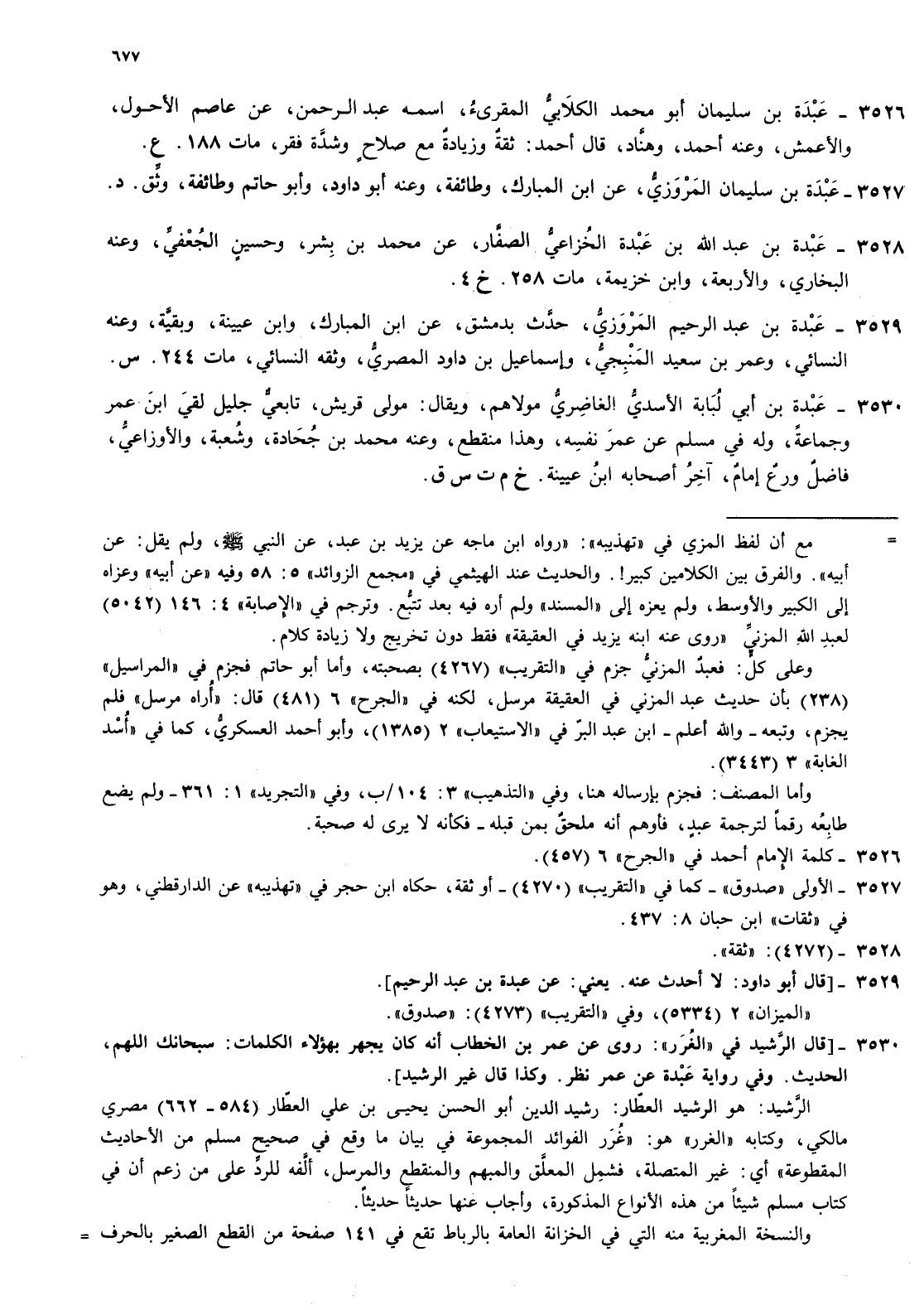 3529- عبدة بن عبد الرحيم المروزي حدث بدمشق عن بن المبارك وابن عيينة وبقية وعنه النسائي وعمر بن سعيد المنبجي وإسماعيل بن داود المصري وثقه النسائي مات 244 س