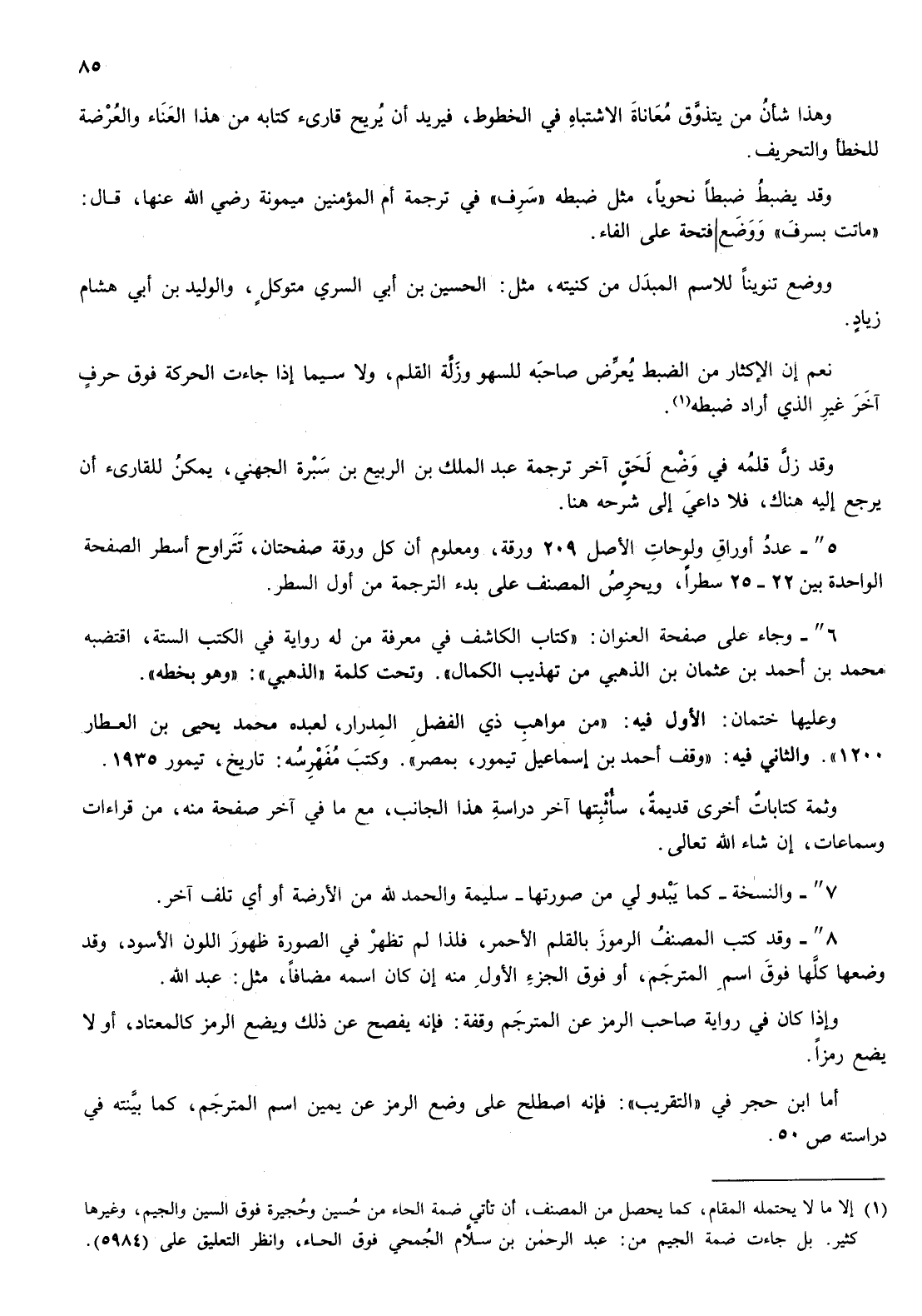 وهذا شان من يتذوق معاناة الاشتباه في الخطوط، فيريد أن يريح قارئ كتابه من هذا العناء والعرضة للخطا والتحريف.