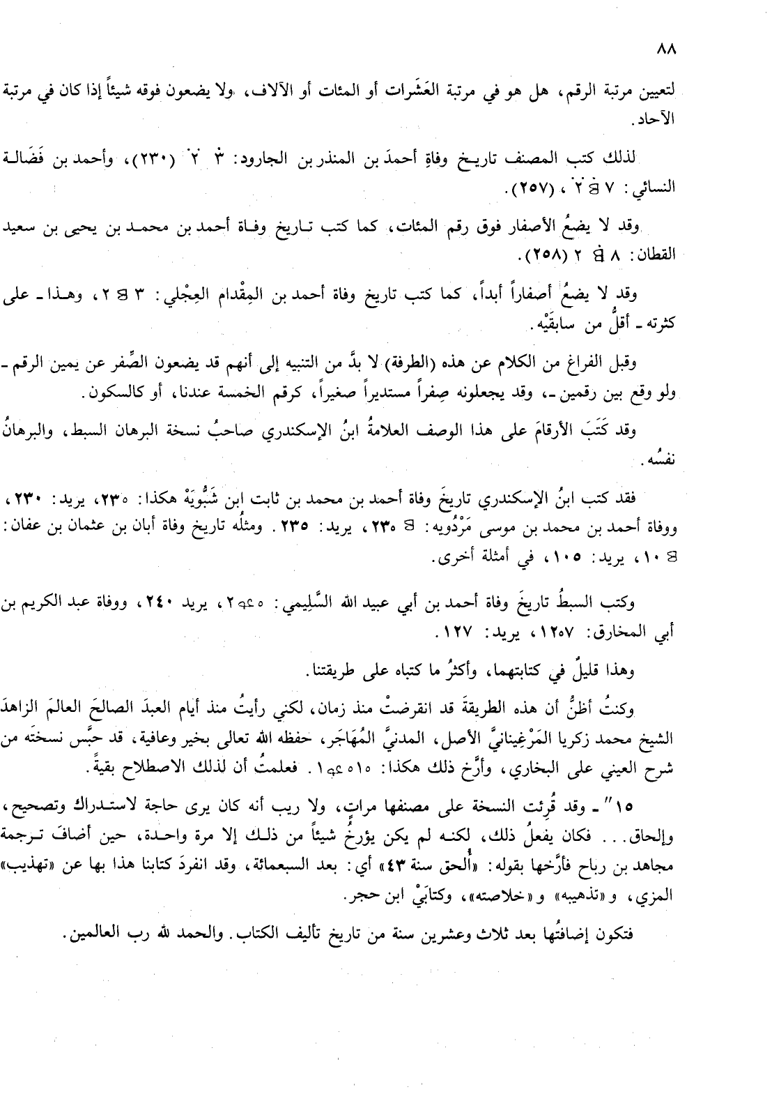 وقد لا يضع أصفارا أبدا، كما كتب تاريخ وفاة أحمد بن المقدام العجلي: 3؟ 2، وهذا - عى كثرته - أقل من سابقيه.
