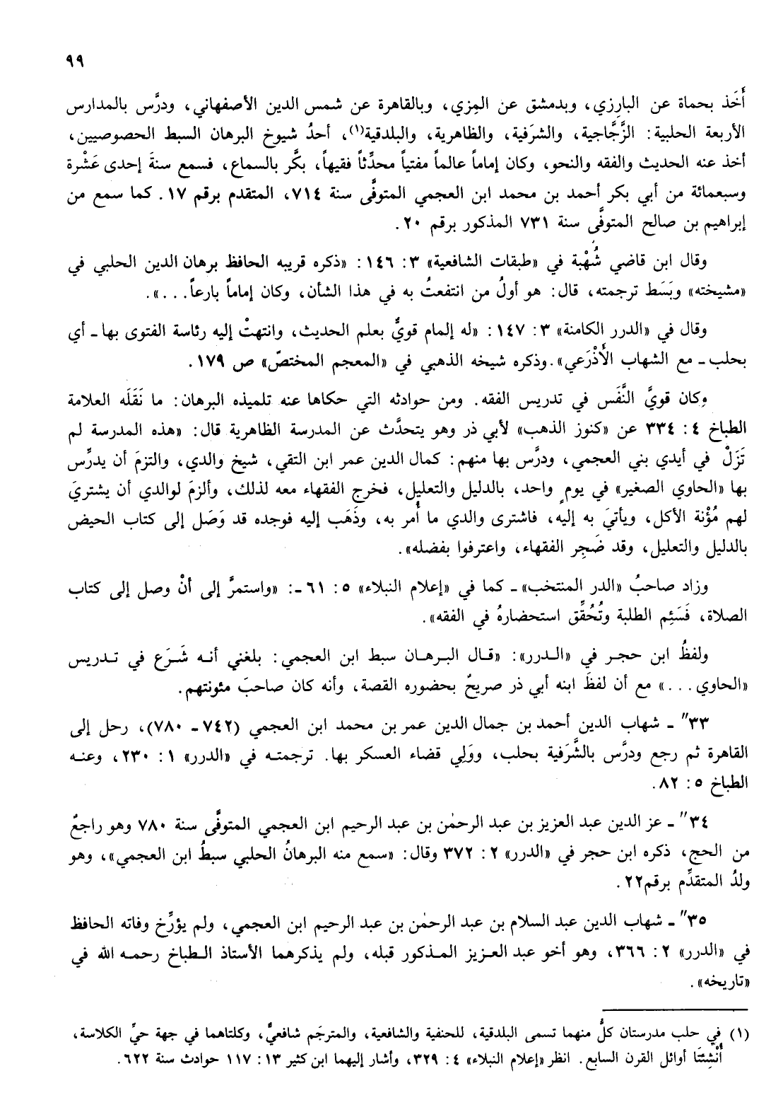 35 " - شهاب الدين عبد السلام بن عبد الرحمن بن عبد الرحيم ابن العجمي، ولم يؤرخ وفاته الحافظ في " الدرر " 2: 366، وهو أخو عبد العزيز امذكور قبله، ولم يذكرهما الاستاذ الطباخ رحمه الله في " تاريخه ".