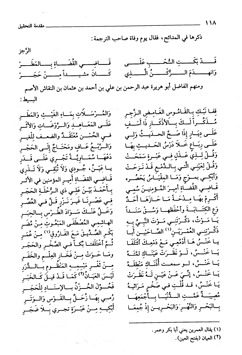 ذكّرتني العمرين [ (١) ] الصّاحبين أبا ... بكر الصّدّيق مع الفاروق [ (١) ] من عمر