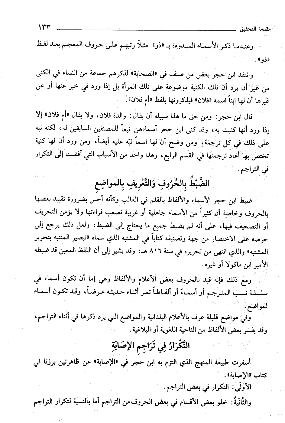 قال ابن حجر: ومن حق ما هذا سبيله أن يقال: والدة فلان، ولا يقال «أم فلان» إلا إذا ورد أنها كنيت به، وقد كنى ابن حجر أسماءهن تبعا للمصنفين السابقين له، لكنه نبه على ذلك في كل ترجمة، ومن وضح أن لها اسما نبّه عليه أيضا، ومن ورد أن لها كنية تختص بها أعاد ترجمتها في القسم الرابع، وهذا واحد من الأسباب التي أفضت إلى التكرار في التراجم.