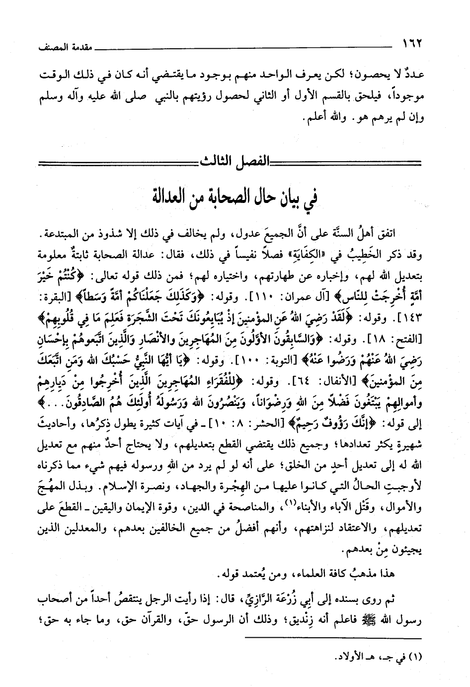 الفصل الثالث في بيان حال الصحابة من العدالة