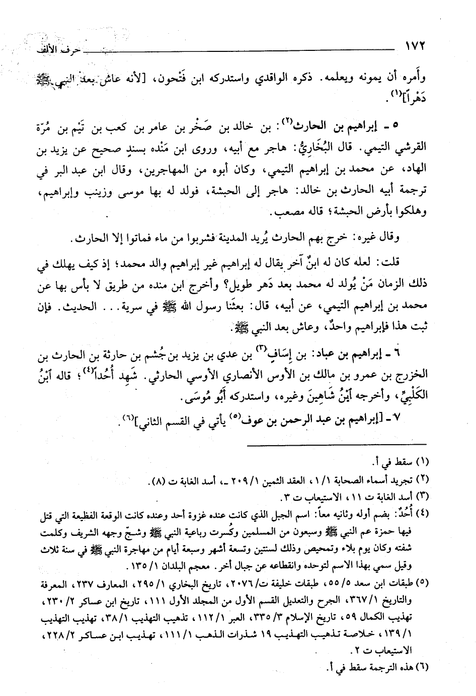 قلت: لعله كان له ابن آخر يقال له إبراهيم غير إبراهيم والد محمد، إذ كيف يهلك في ذلك الزمان من يولد له محمد بعد دهر طويل؟ وأخرج ابن مندة من طريق لا بأس بها عن محمد بن إبراهيم التيمي، عن أبيه، قال: بعثنا رسول اللَّه صلّى اللَّه عليه وسلم في سرية ... الحديث. فإن ثبت هذا فإبراهيم واحد، وعاش بعد النبي صلّى اللَّه عليه وسلم.