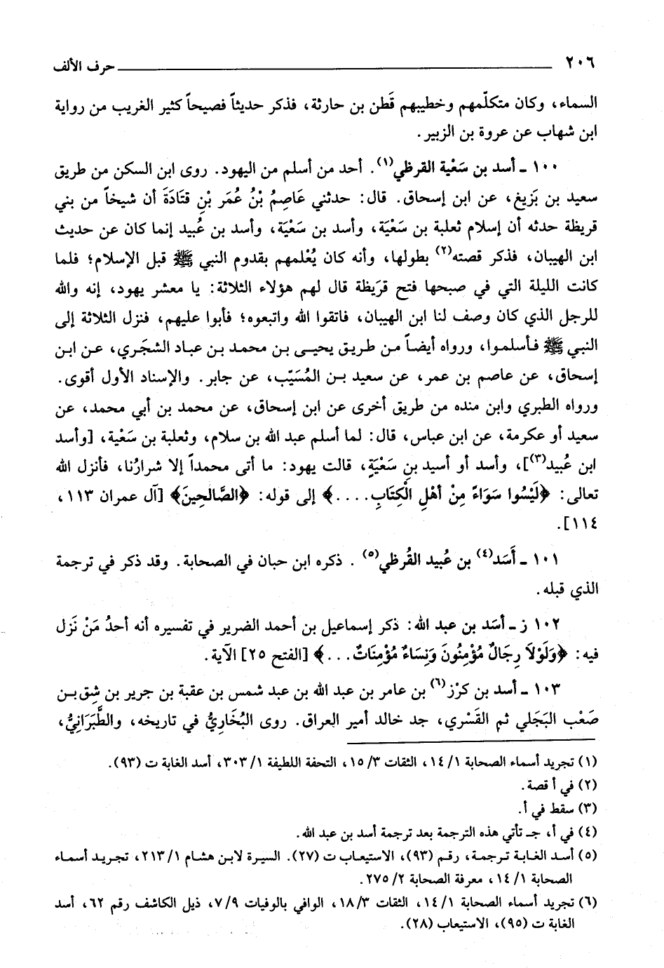 ١٠٠- أسد بن سعية القرظي [ (١) ] .