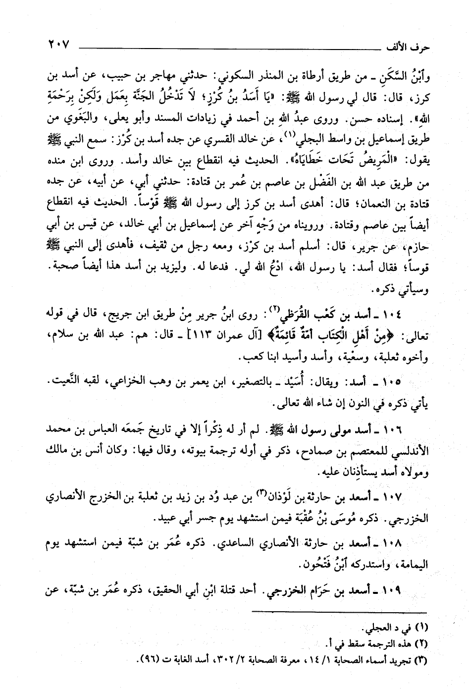 روى ابن جرير من طريق ابن جريج، قال في قوله تعالى: مِنْ أَهْلِ الْكِتابِ أُمَّةٌ قائِمَةٌ [آل عمران ١١٣]- قال: هم: عبد اللَّه بن سلام، وأخوه ثعلبة، وسعية، وأسد وأسيد ابنا كعب.