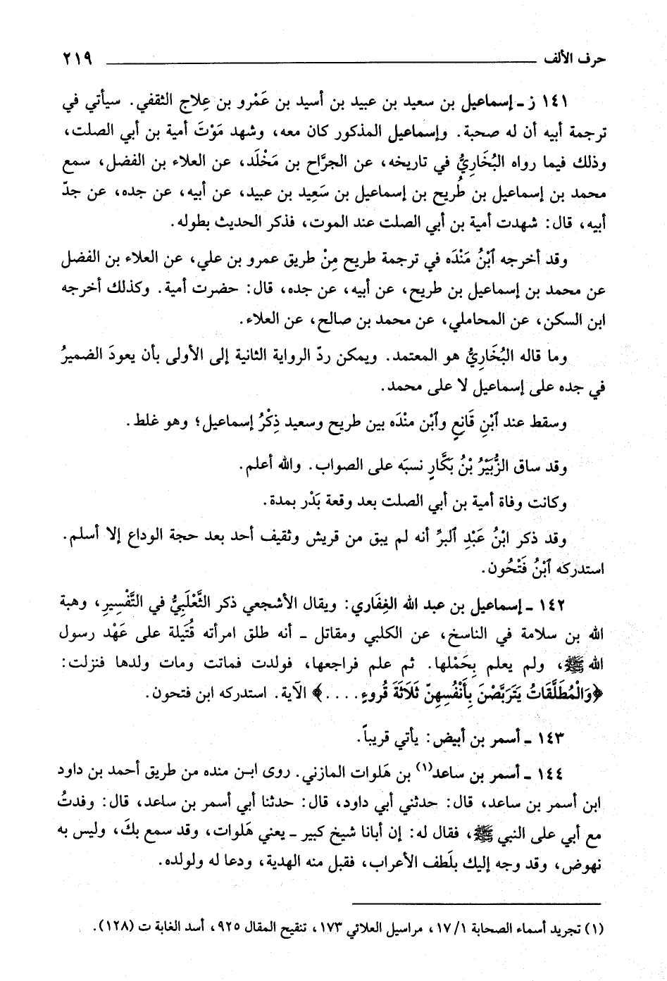 [ (١) ] تجريد أسماء الصحابة ١/ ١٧، مراسيل العلائي ١٧٣، تنقيح المقال ٩٢٥، أسد الغابة ت (١٢٨) .