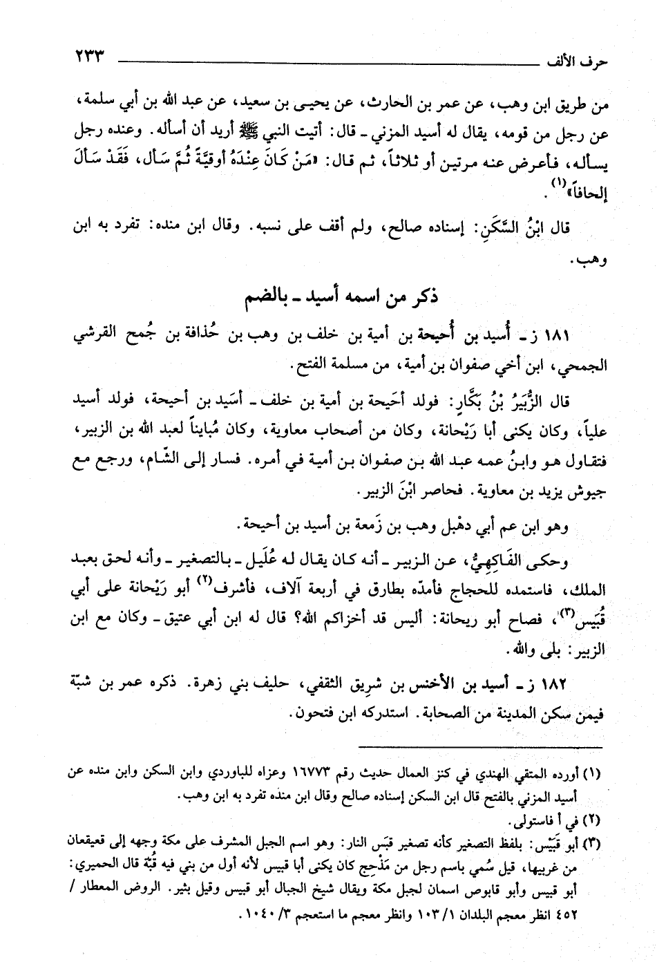 [ (١) ] أورده المتقي الهندي في كنز العمال حديث رقم ١٦٧٧٣ وعزاه للباوردي وابن السكن وابن مندة عن أسيد المزني بالفتح قال ابن السكن إسناده صالح وقال ابن مندة تفرد به ابن وهب.