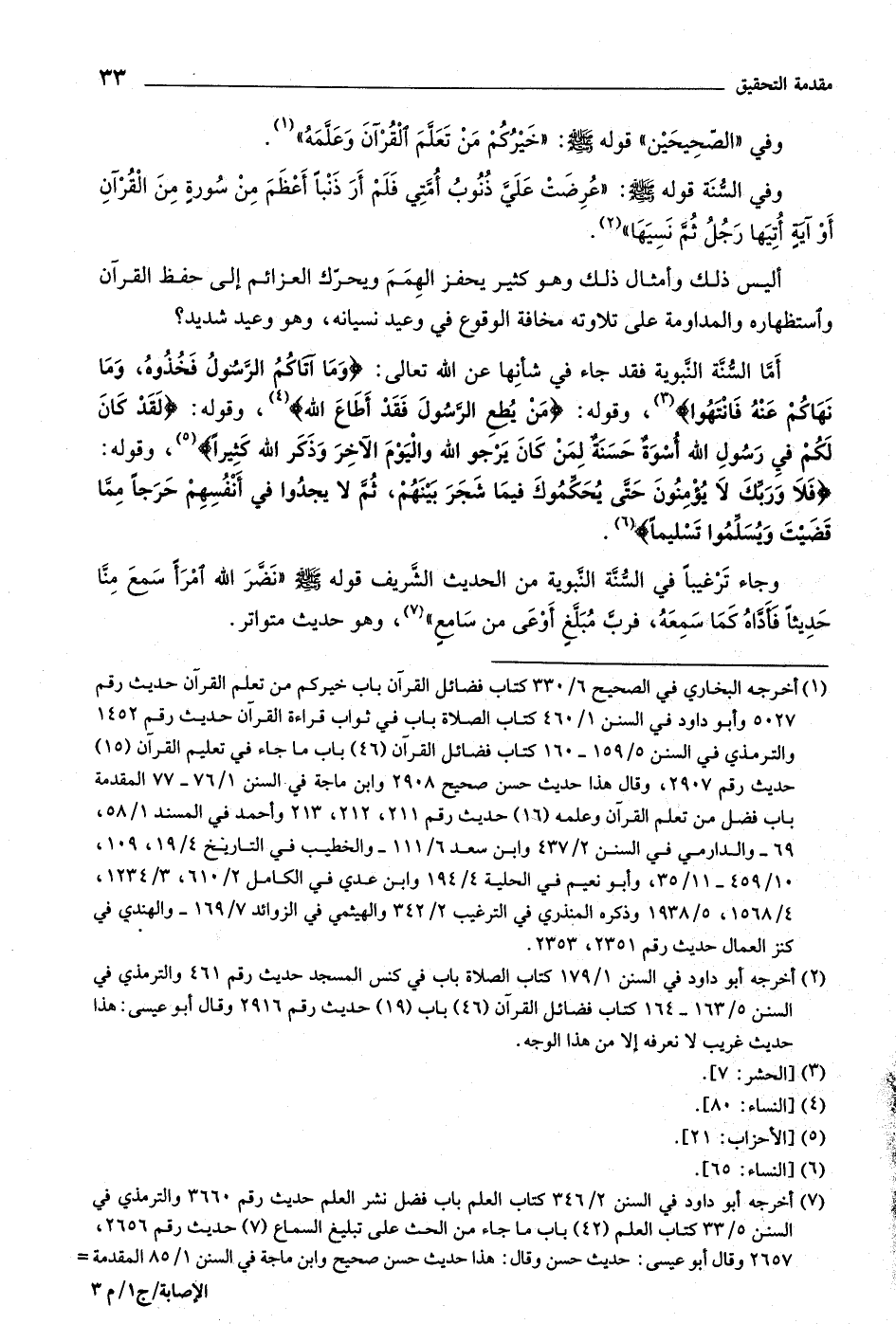 [ (١) ] أخرجه البخاري في الصحيح ٦/ ٣٣٠ كتاب فضائل القرآن باب خيركم من تعلم القرآن حديث رقم ٥٠٢٧ وأبو داود في السنن ١/ ٤٦٠ كتاب الصلاة باب في ثواب قراءة القرآن حديث رقم ١٤٥٢ والترمذي في السنن ٥/ ١٥٩- ١٦٠ كتاب فضائل القرآن (٤٦) باب ما جاء في تعليم القرآن (١٥) حديث رقم ٢٩٠٧، وقال هذا حديث حسن صحيح ٢٩٠٨ وابن ماجة في السنن ١/ ٧٦- ٧٧ المقدمة باب فضل من تعلم القرآن وعلمه (١٦) حديث رقم ٢١١، ٢١٢، ٢١٣ وأحمد في المسند ١/ ٥٨، ٦٩- والدارميّ في السنن ٢/ ٤٣٧ وابن سعد ٦/ ١١١- والخطيب في التاريخ ٤/ ١٩، ١٠٩، ١٠/ ٤٥٩- ١١/ ٣٥، وأبو نعيم في الحلية ٤/ ١٩٤ وابن عدي في الكامل ٢/ ٦١٠، ٣/ ١٢٣٤، ٤/ ١٥٦٨، ٥/ ١٩٣٨ وذكره المنذري في الترغيب ٢/ ٣٤٢ والهيثمي في الزوائد ٧/ ١٦٩- والهندي في كنز العمال حديث رقم ٢٣٥١، ٢٣٥٣.